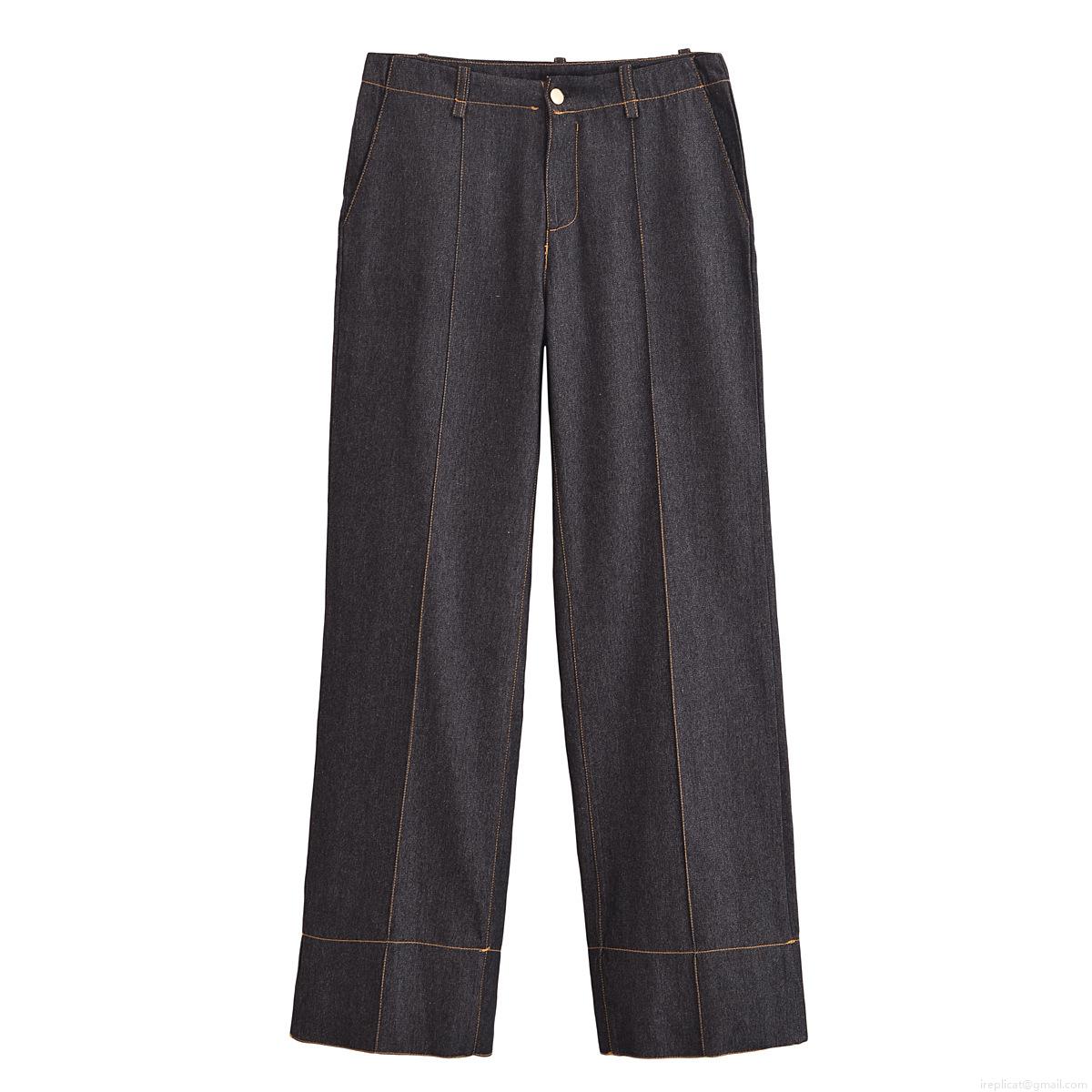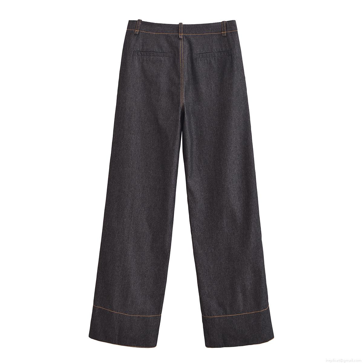 • Women's Casual Polyester Denim Style Shirt and Wide Leg Pants Two Piece Set With Contrast Stitching Long Sleeve Button Up Top and High Waist Trousers Streetwear Outfits