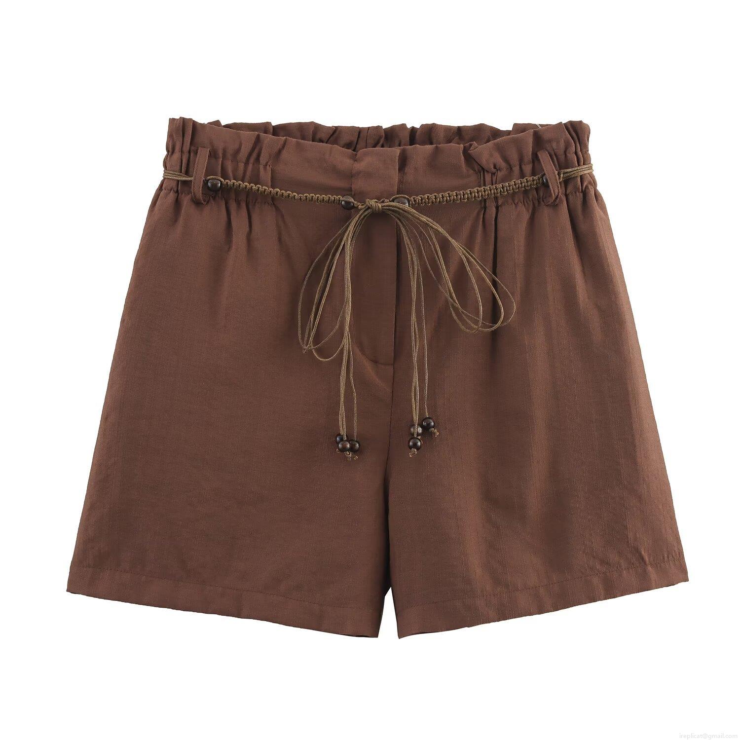 • Women's Casual Polyester Linen Texture Short Sleeve Crop Blazer and Beaded Drawstring Shorts Set Solid Color Two Piece Streetwear Outfit for Women