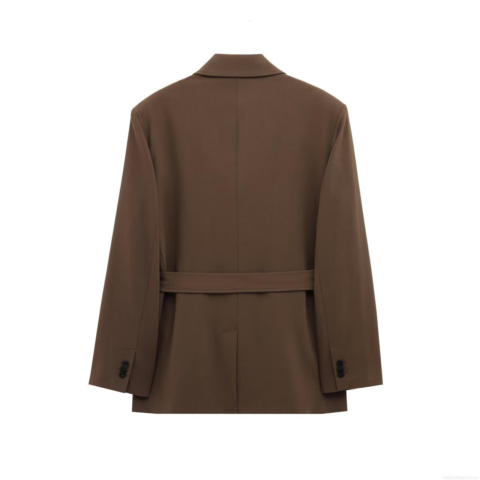 • Women's Casual Professional Suit Set Belted Long Sleeve Blazer High Waist Wide Leg Pants Polyester Street Style Office Two Piece Outfit