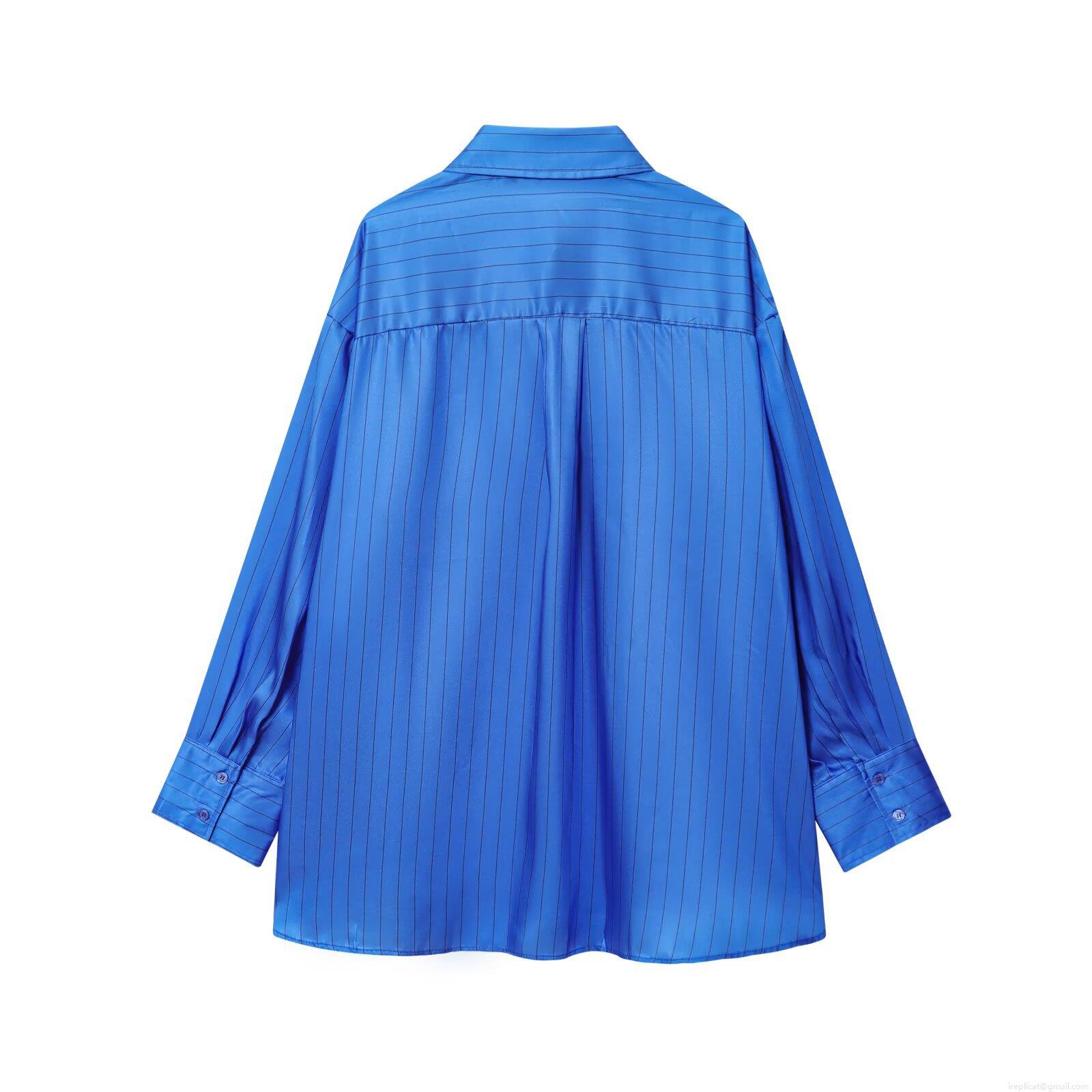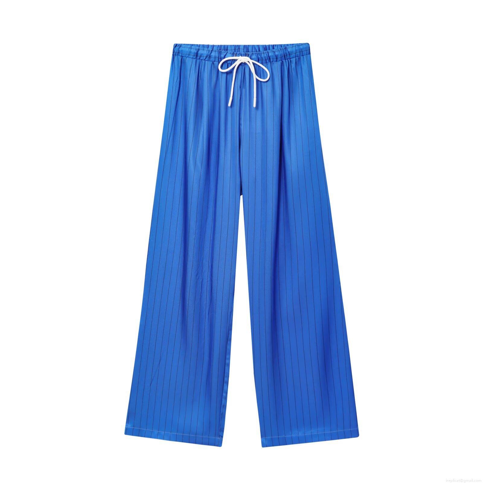 • Women's Casual Satin Striped Two Piece Set Long Sleeve Button Down Shirt And High Waist Wide Leg Pants Loose Lounge Tracksuit Outfits