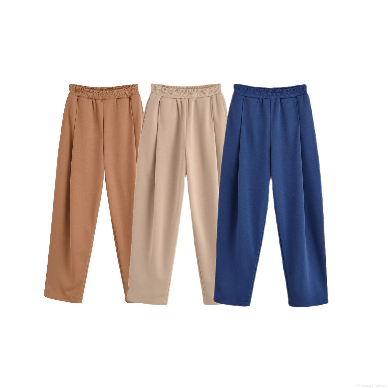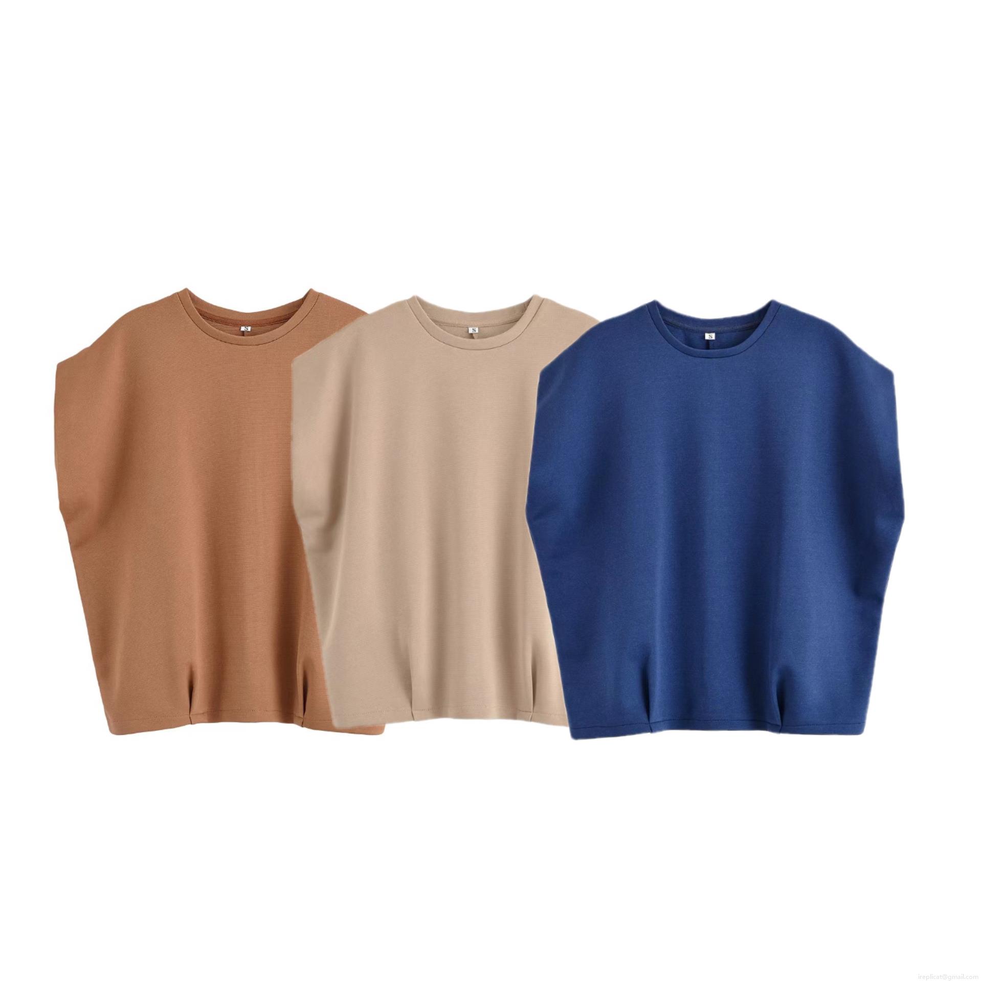 • Women's Casual Sleeveless Round Neck T-Shirt And High Waist Straight Leg Pants Set Solid Color Polyester Streetwear Two Piece Outfits For Ladies