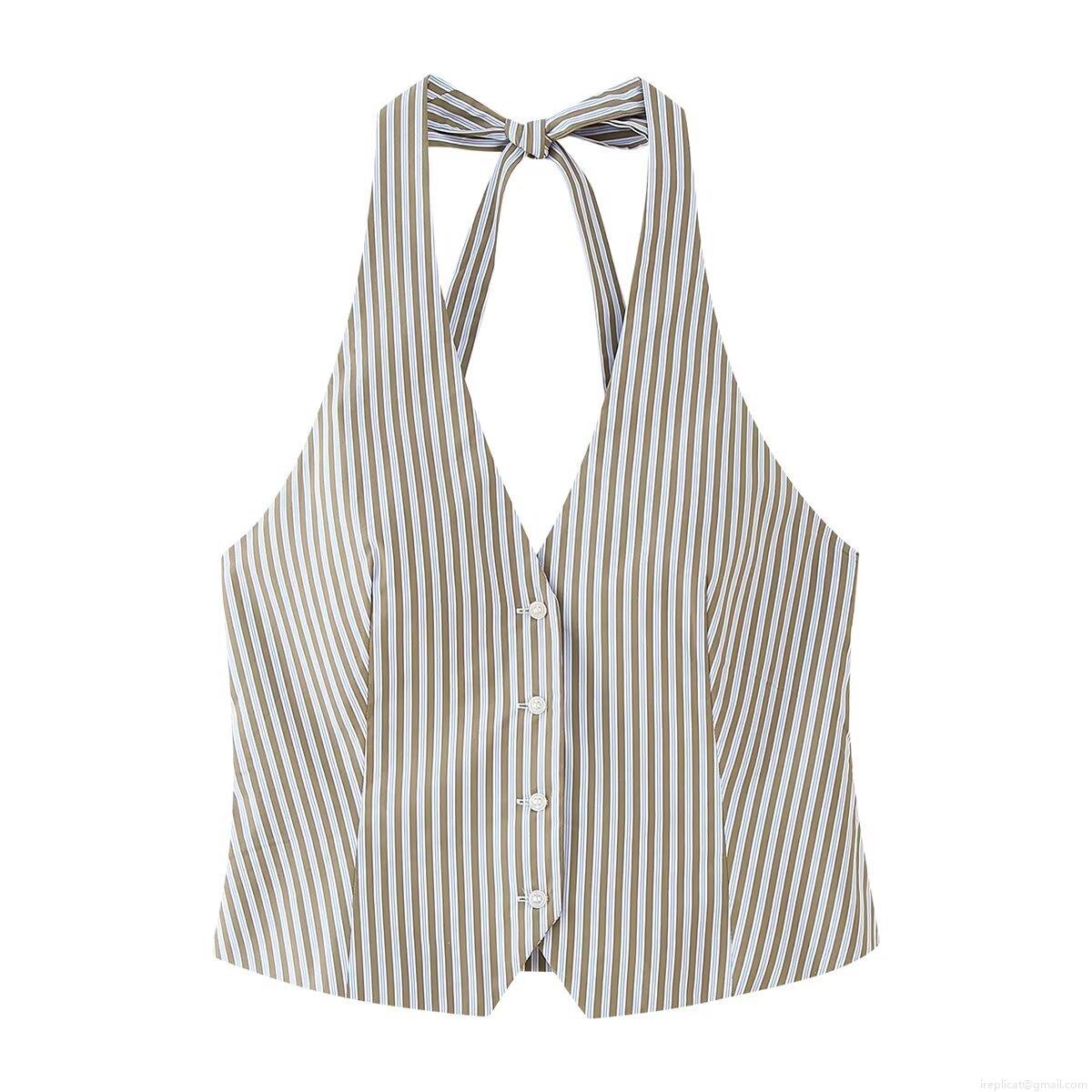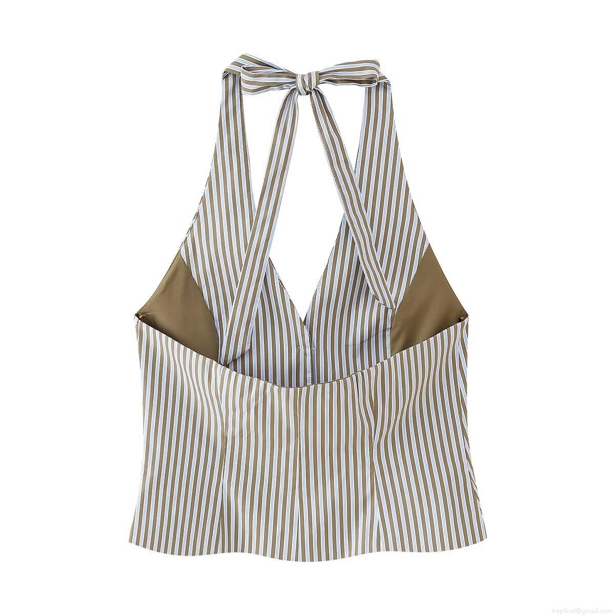 • Women's Casual Stripe Two Piece Set Halter Neck Backless Vest Top And Wide Leg Pants Outfits Fashion Summer Streetwear Tracksuits For Women Coffee Blue