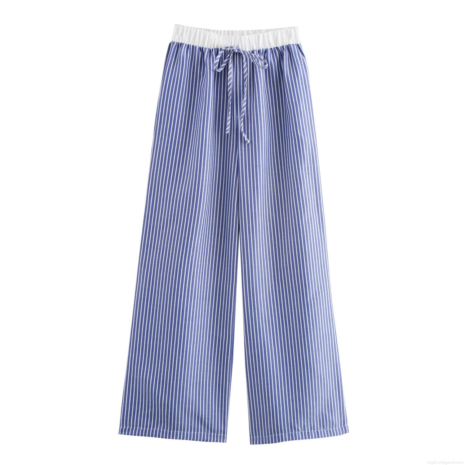 • Women's Casual Striped 2 Piece Set Long Sleeve Button Down Shirt And Drawstring Wide Leg Pants Loungewear Outfit For Women Comfortable Home Wear Travel Set
