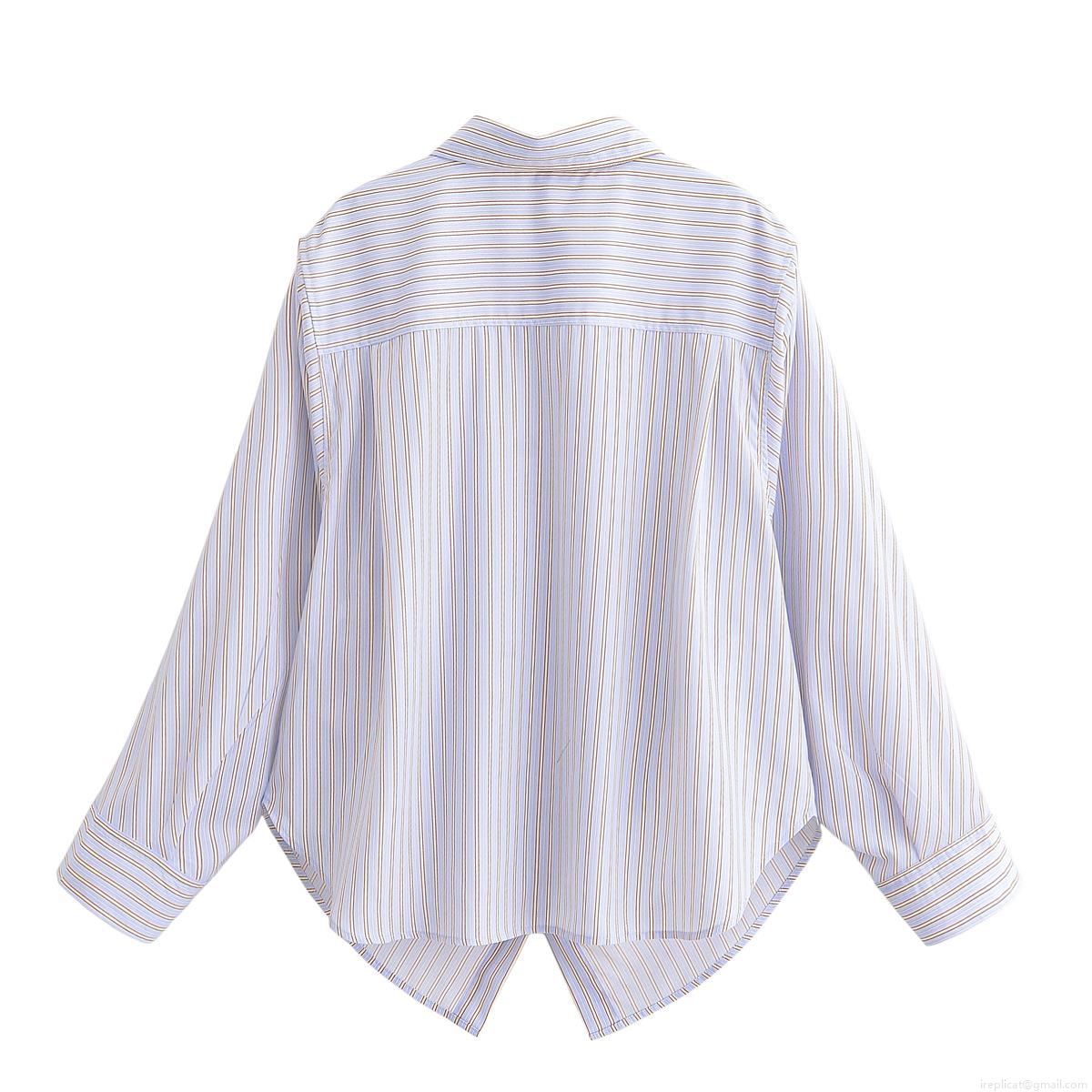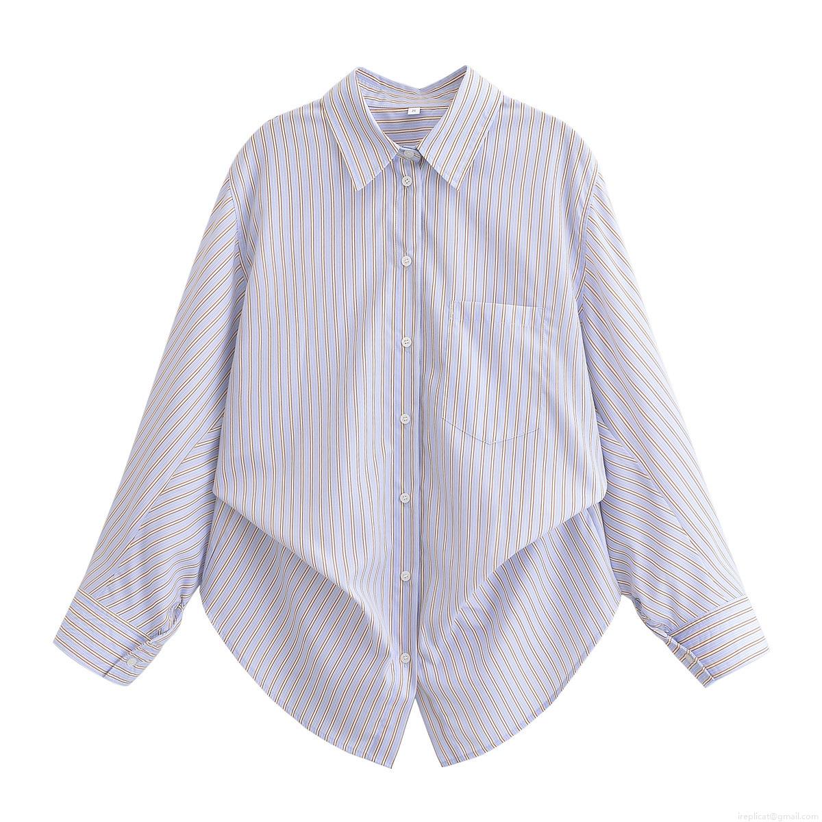 Vertical Stripes, Rolled Edge Design, Button Decoration, Front Chest Pocket