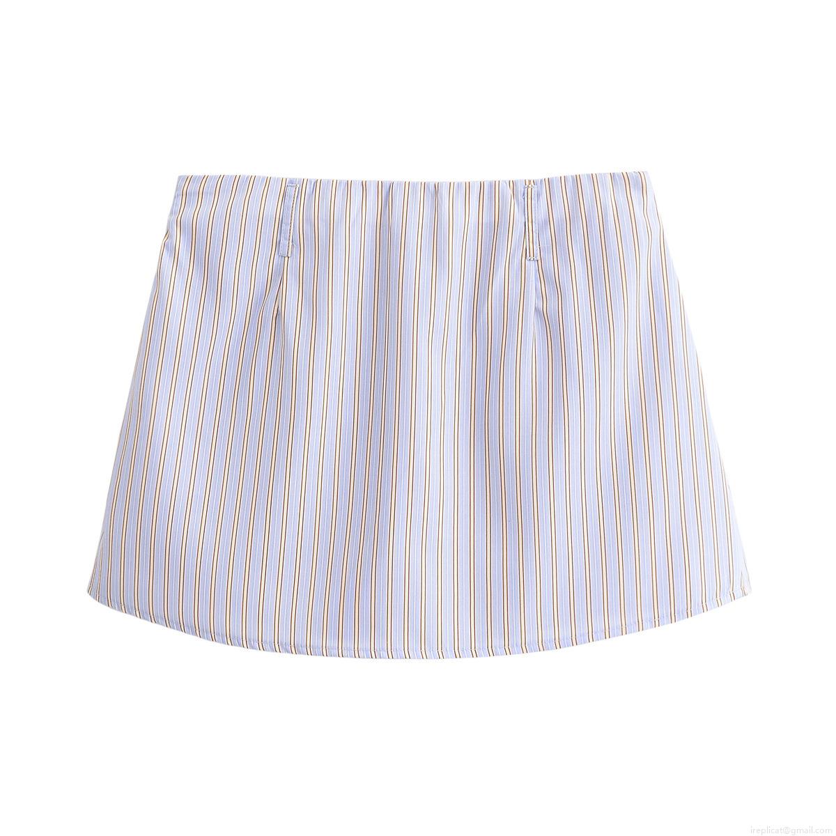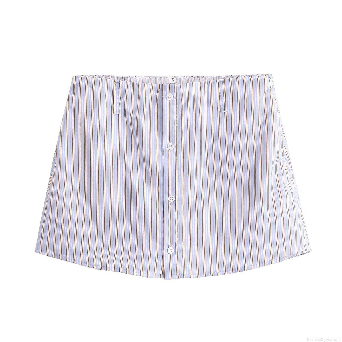 • Women's Casual Striped Poplin Shirt and Culottes Two Piece Set Long Sleeve Button Down Blouse and Mini Skort Shorts Streetwear Summer Vacation Outfit