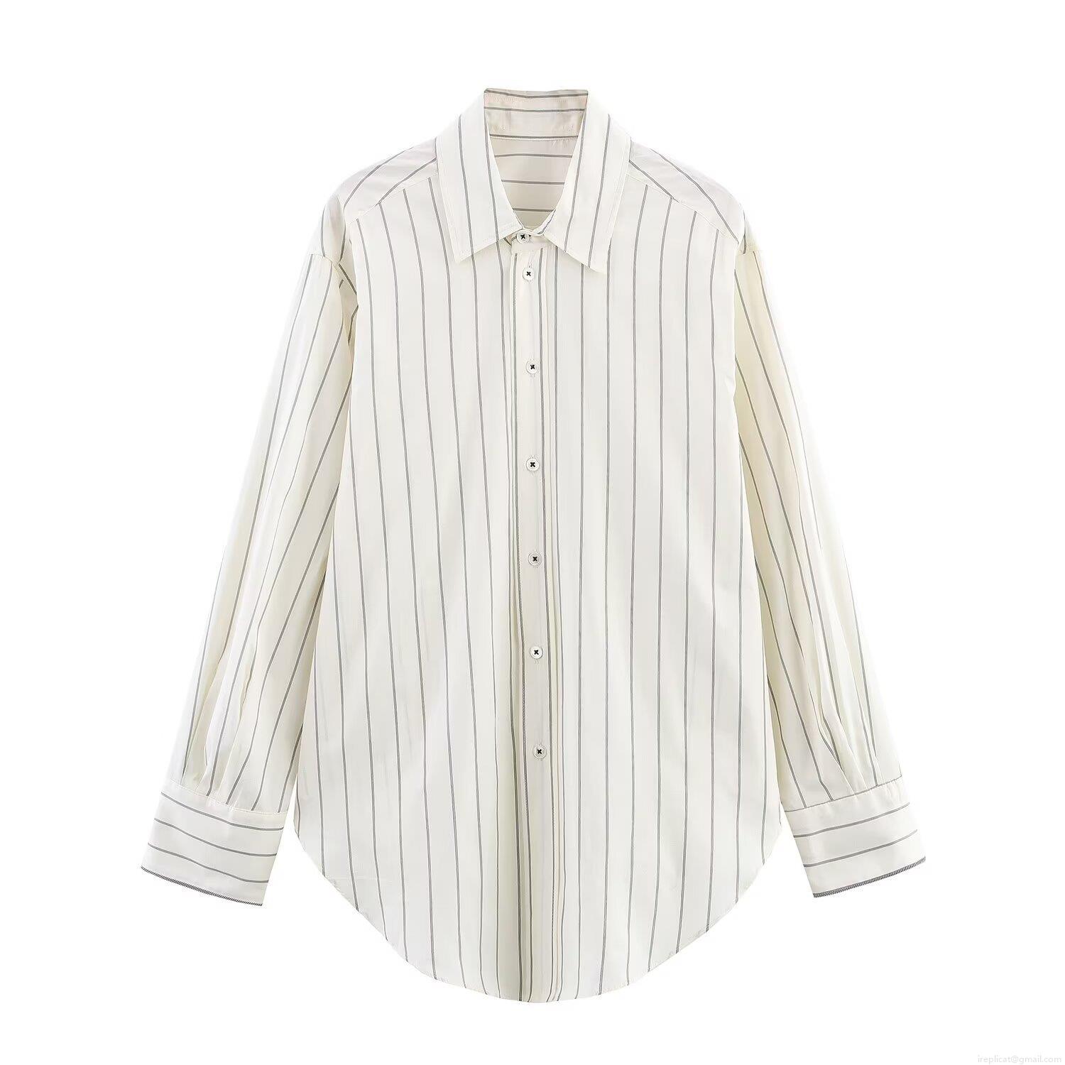 • Women's Casual Striped Two Piece Set Polyester Long Sleeve Button Down Shirt And Drawstring Wide Leg Pants Suits Breathable Streetwear Loungewear For Women