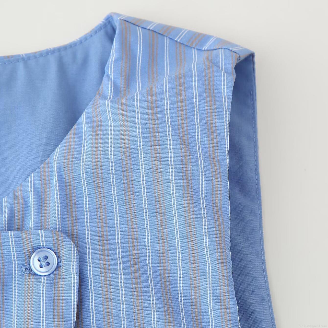 • Women's Casual Striped Two-Piece Set Sleeveless Asymmetrical Button Top And High Waist Loose Straight Leg Pants 100% Polyester Loungewear Suit For Summer Vacation