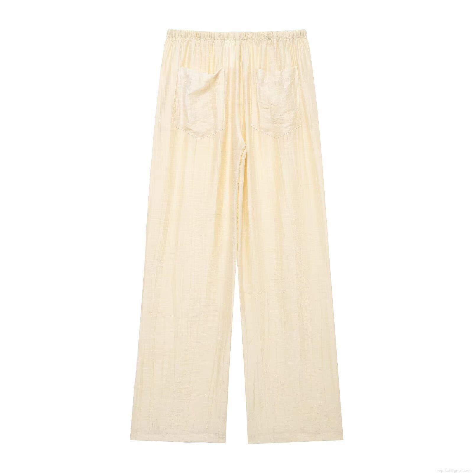 Solid Color, Drawstring, V-neck, Elastic Waistband, Wide-leg, Pleating Technique, Vertical Texture