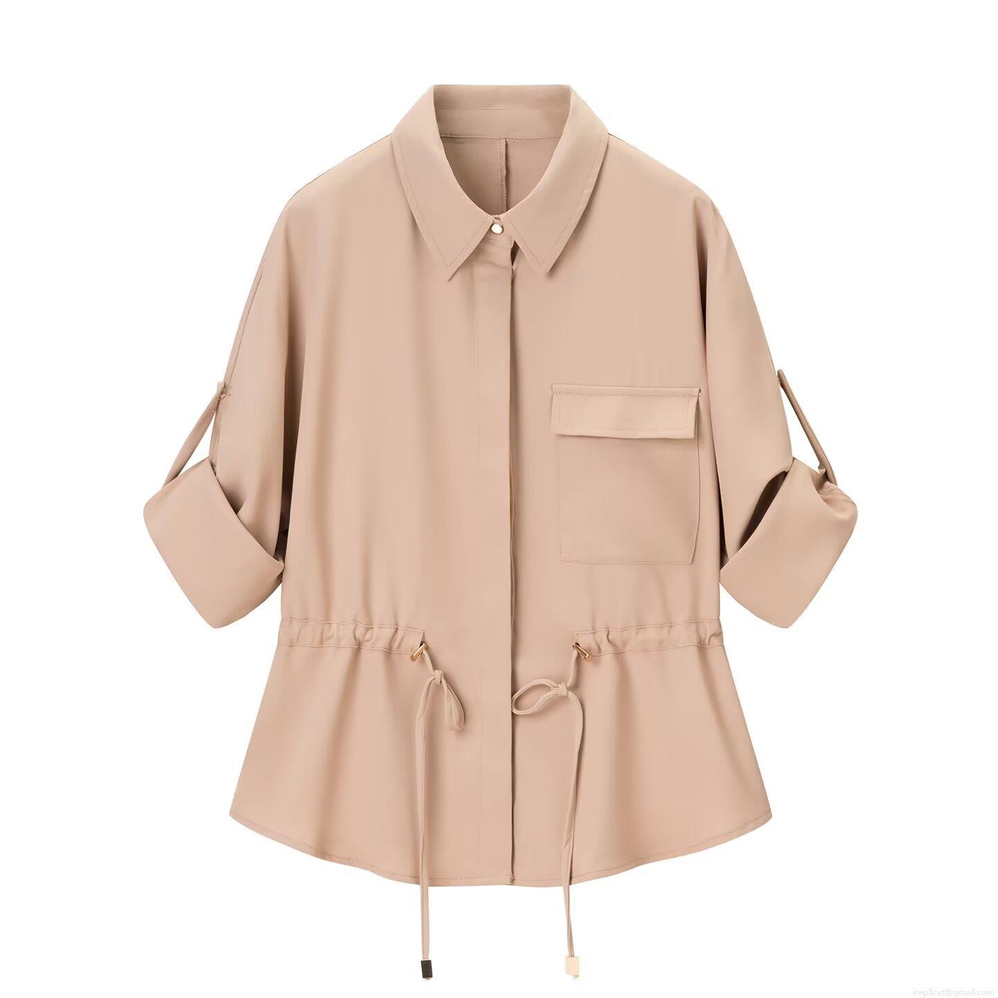 Women's Casual Two Piece Outfits Apricot Polyester Twill Shirt Top And Wide Leg Pants Set Street Style Drawstring Waist Co-ord Pants Suits For Women