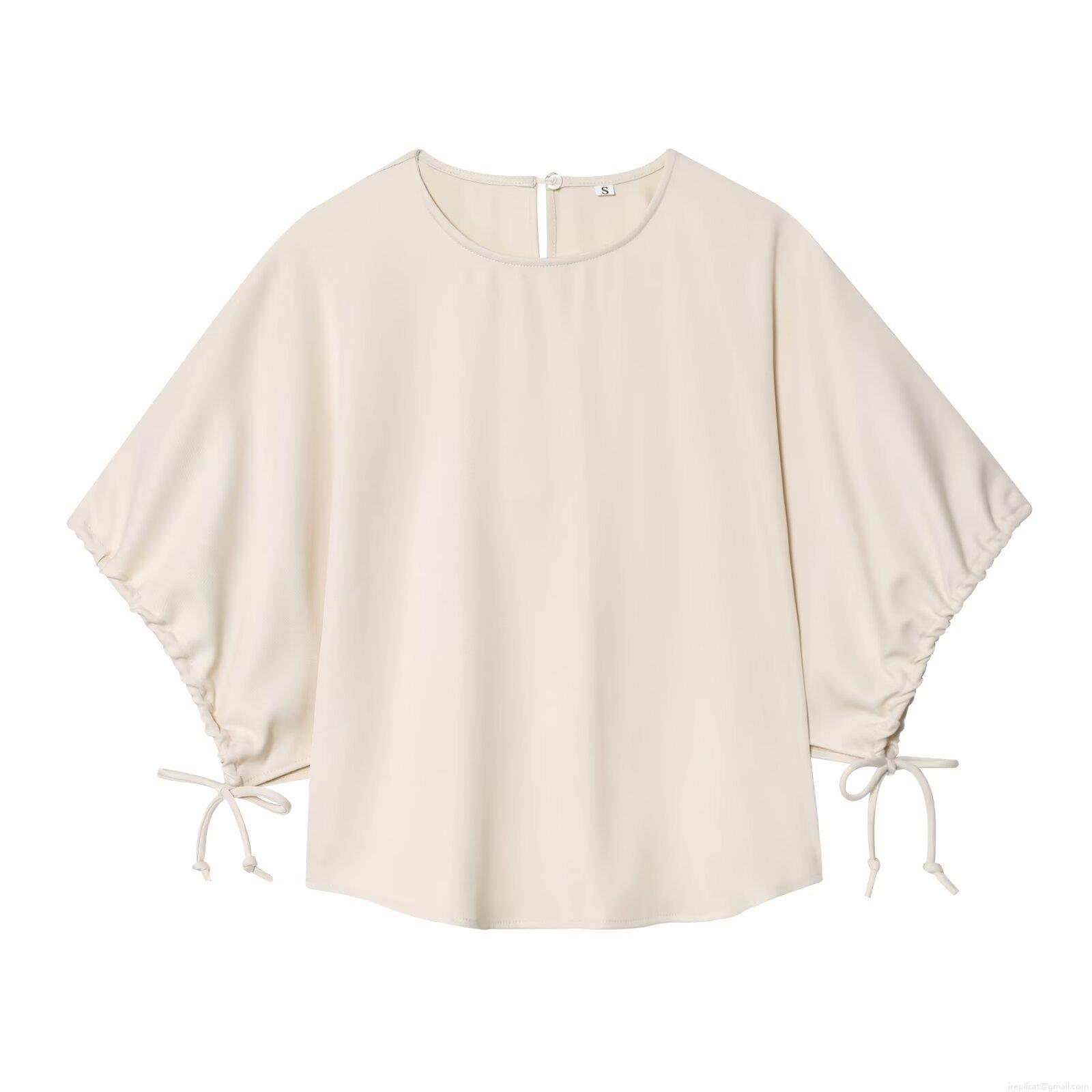 • Women's Casual Two Piece Pants Set Solid Color Polyester Short Drawstring Sleeve Round Neck Top And High Waist Wide Leg Trousers Outfits For Daily Streetwear Office
