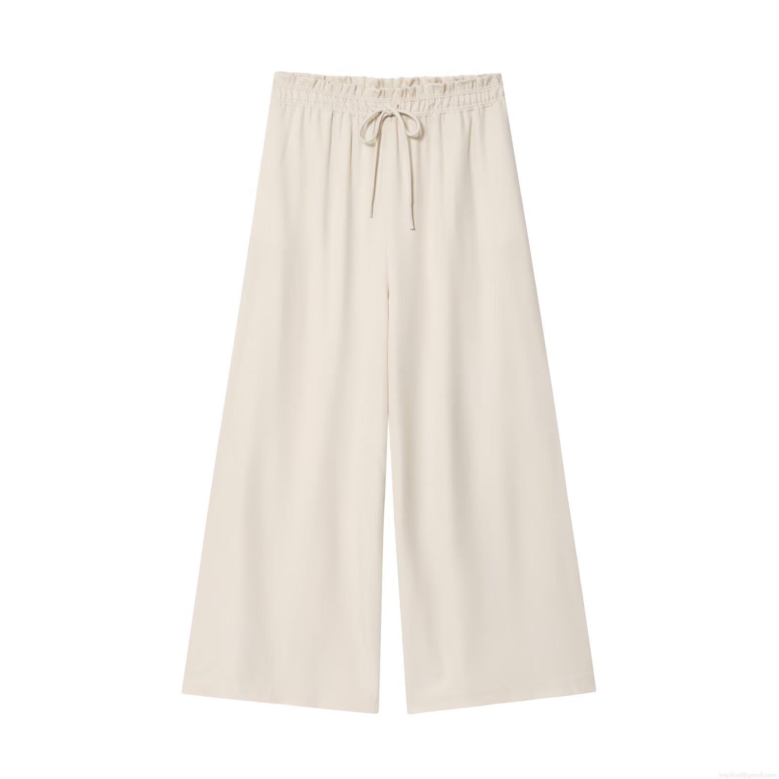 Solid Color, High-waisted Wide-leg Pants, Elastic Strap, Drawstring Sleeves