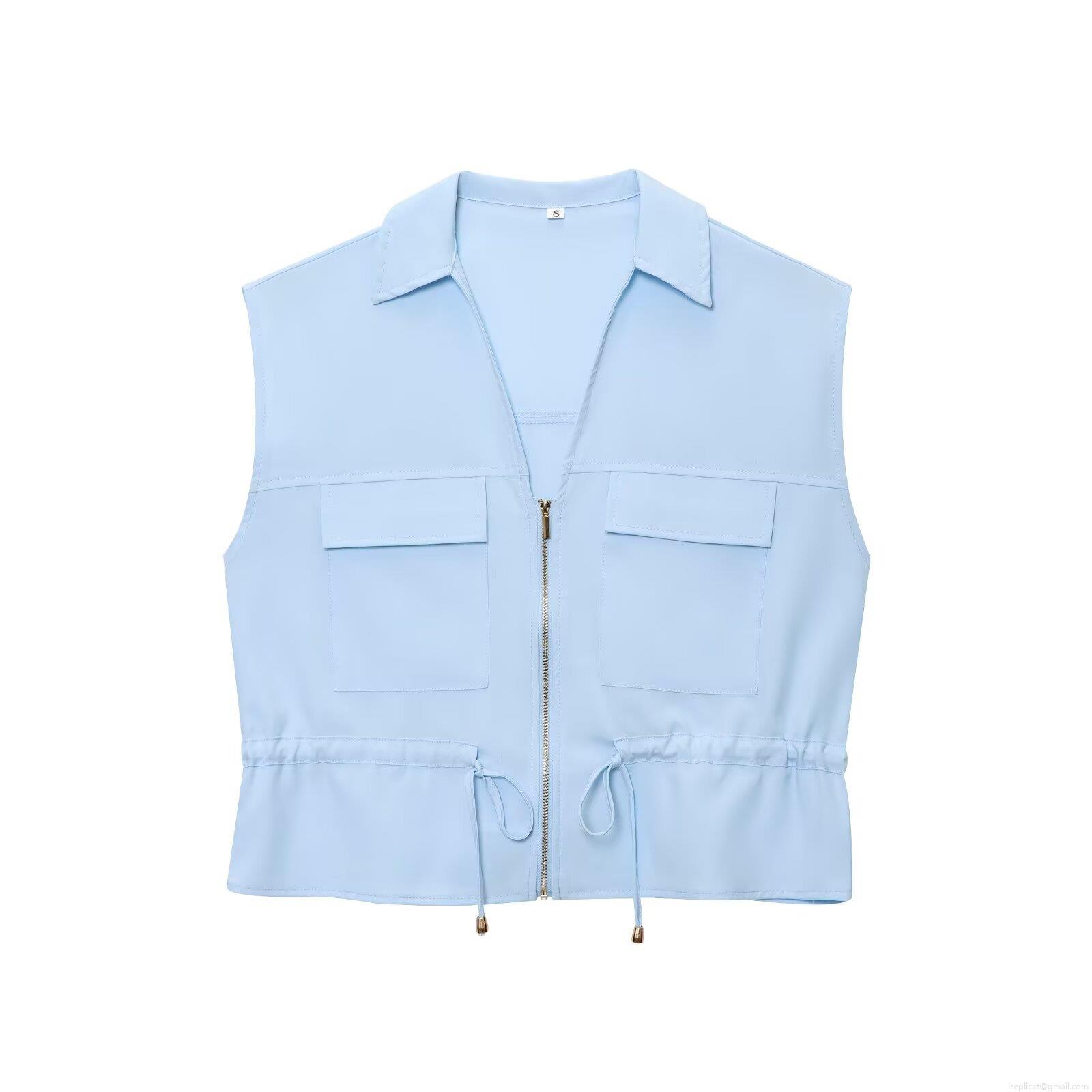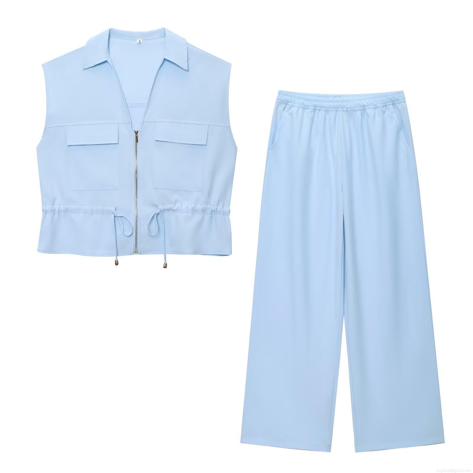 • Women's Casual Two Piece Pants Set Summer Sleeveless Vest Top With Zipper Pockets And Drawstring High Waist Wide Leg Pants Streetwear Outfit