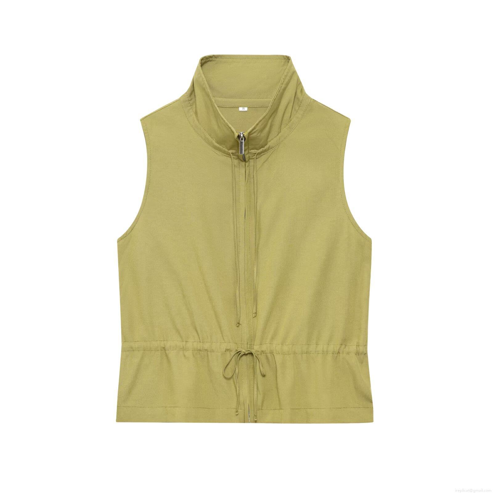 • Women's Casual Two Piece Pants Set Zip Up Stand Collar Sleeveless Vest And Drawstring Wide Leg Pants Solid Color Streetwear Tracksuit For Ladies