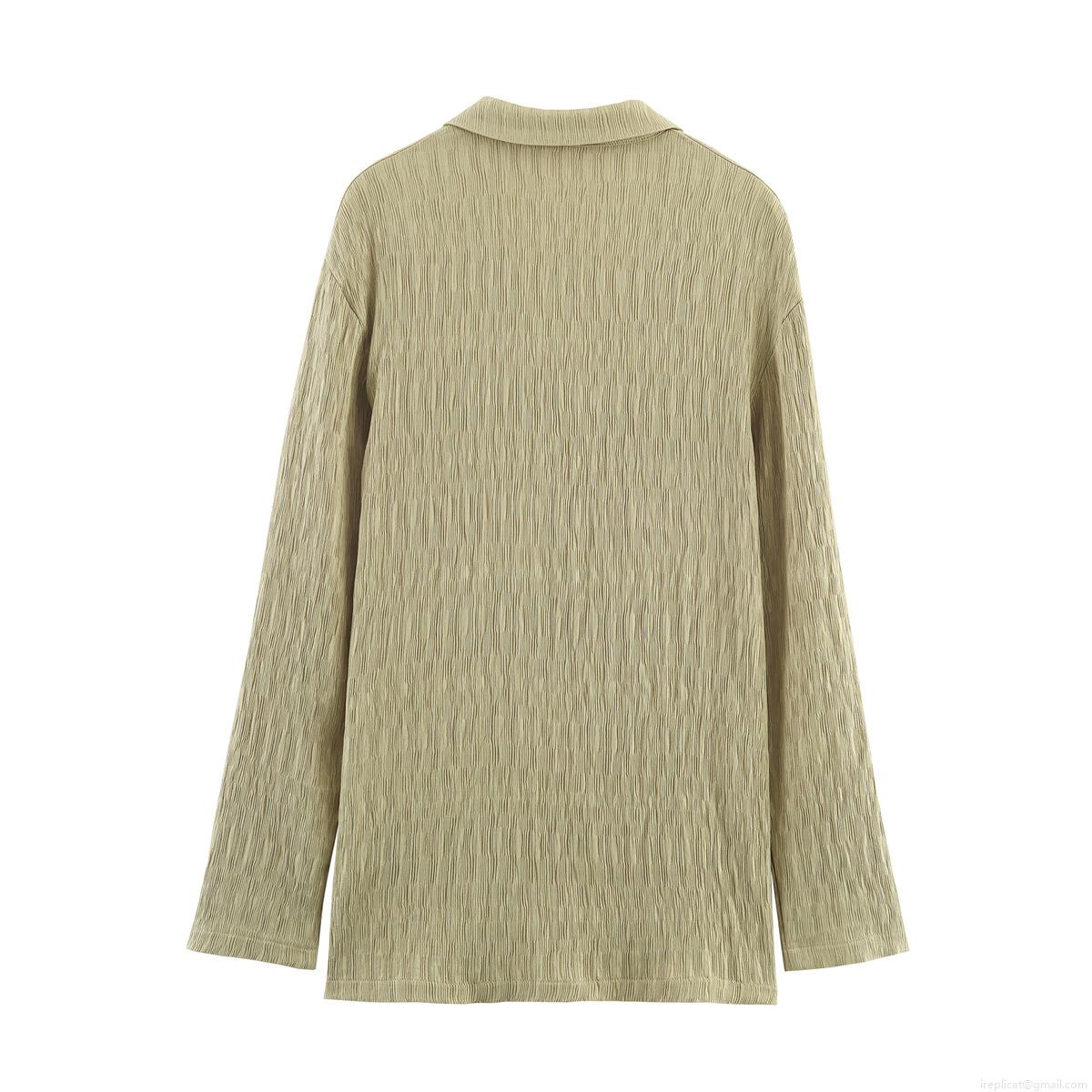 • Women's Casual Two Piece Pleated Set 100% Polyester Textured Long Sleeve Button Shirt And Wide Leg Pants Loungewear Streetwear Set For Women