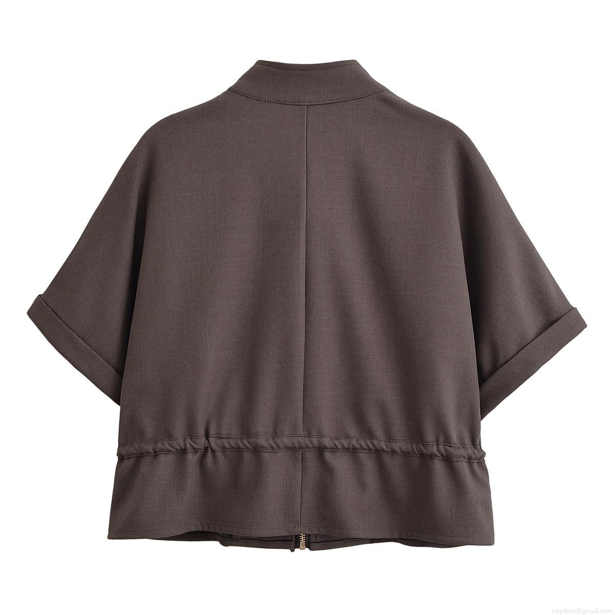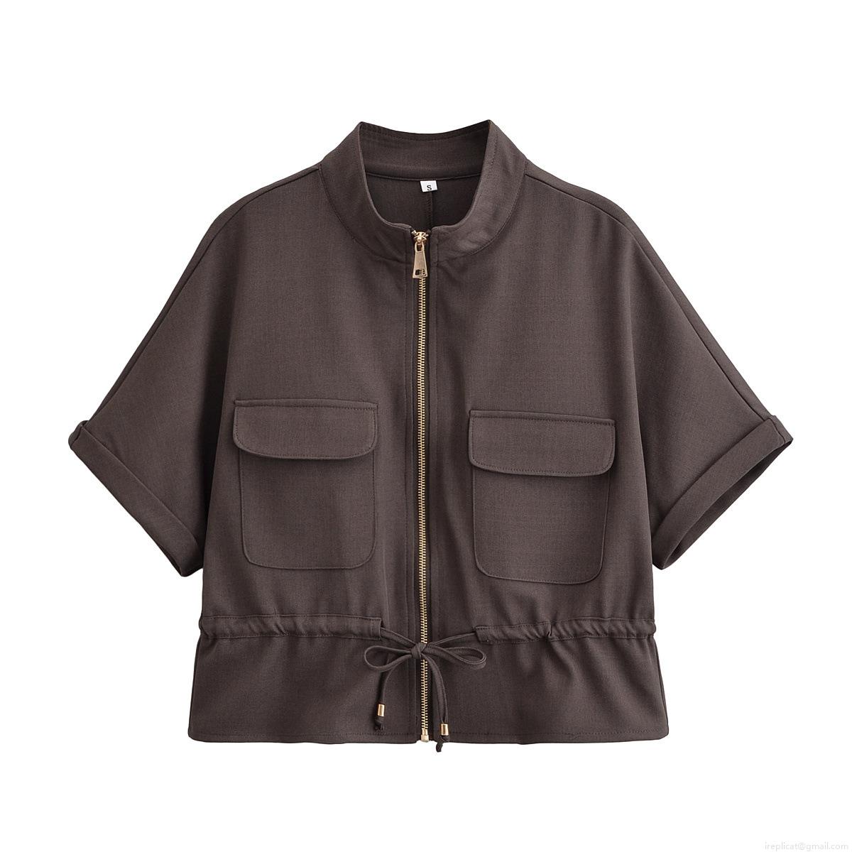 Solid Color, Stand-up Collar, Metal Zipper, Pleating Process, Drawstring Hem, Wide-leg Style, Workwear Large Pockets