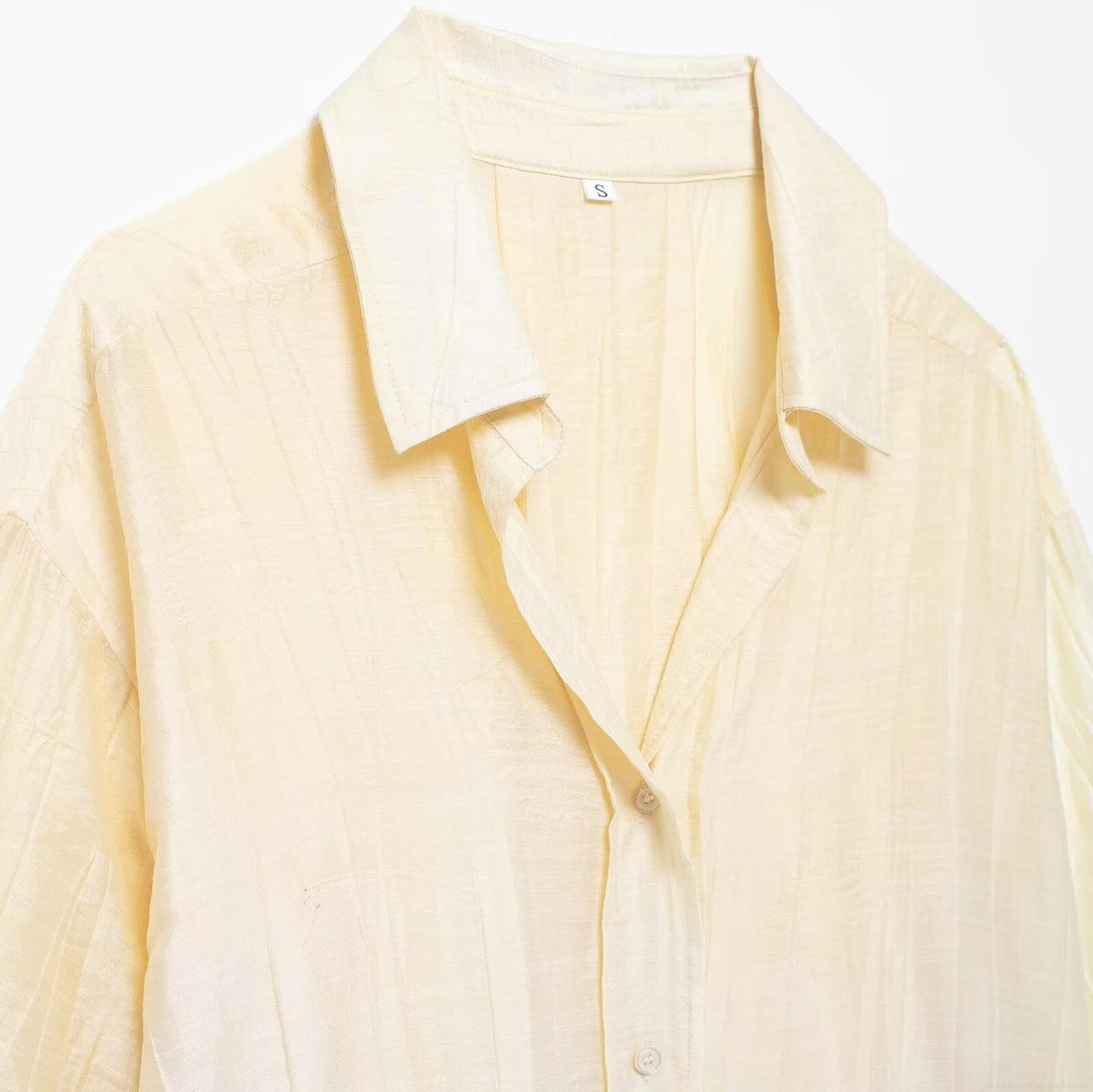 • Women's Casual Two Piece Set 100% Polyester Textured Short Sleeve V-Neck Shirt And Drawstring Wide Leg Trousers Summer Loungewear Outfit Cream Yellow Solid Color Coordinates For Women