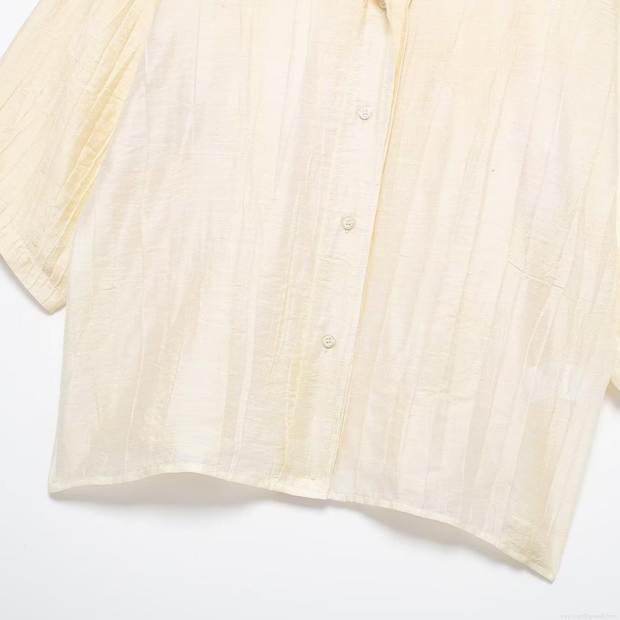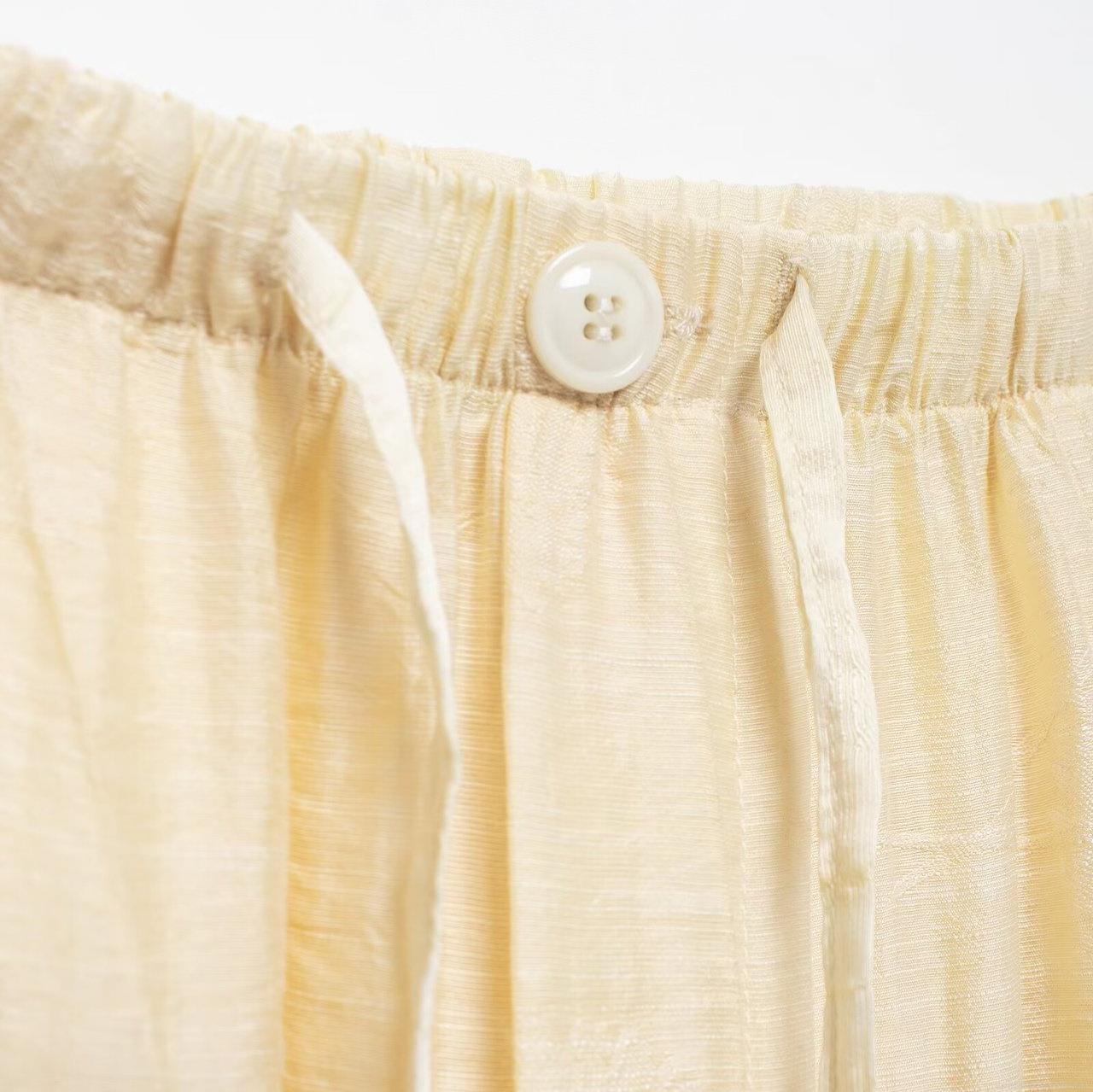 Solid Color, Wrinkled Texture, Vertical Stripes, Matching Buttons, Drawstring Waistband
