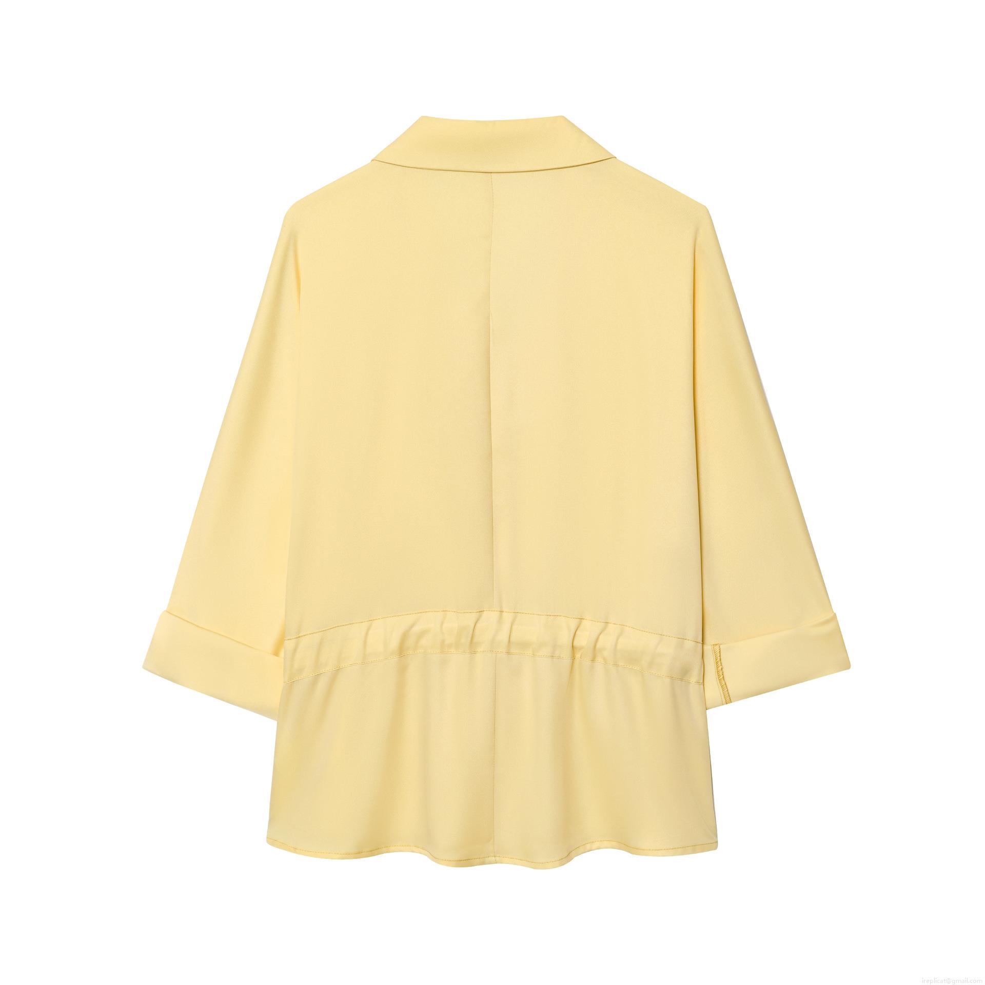 • Women's Casual Two Piece Set Polyester Lapel Button Down Shirt And High Waist Wide Leg Pants Pale Yellow Streetwear Lounge Set For Ladies
