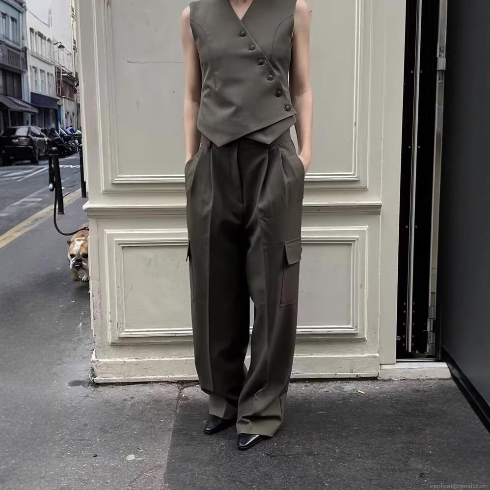 • Women's Casual Two Piece Set Solid Color Diagonal Placket Asymmetrical Vest And High Waist Cargo Pants With Pockets Streetwear Outfits For Women