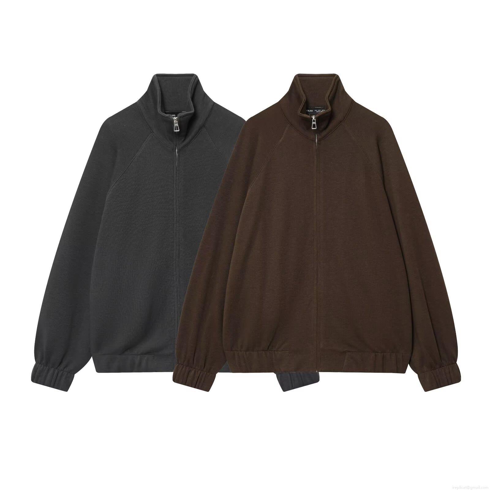 Solid Color, Zipper, Drawstring, Stand-up Collar, Wide-leg