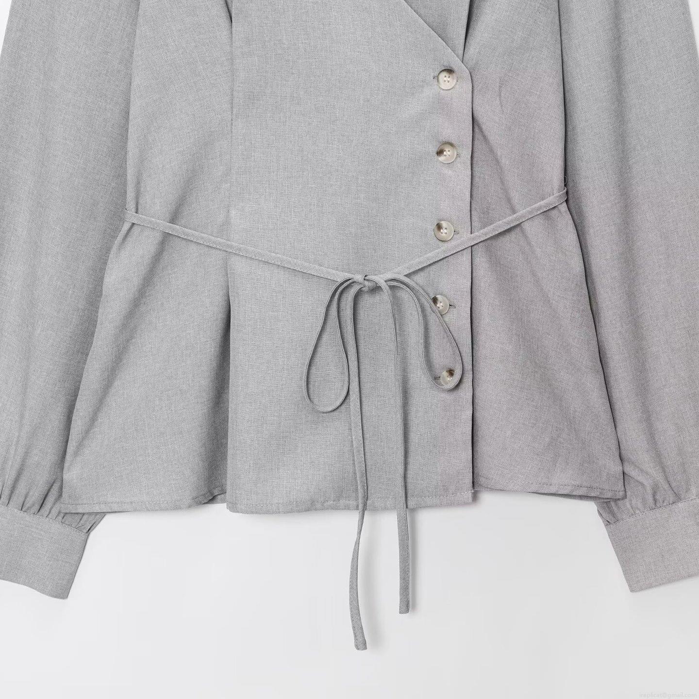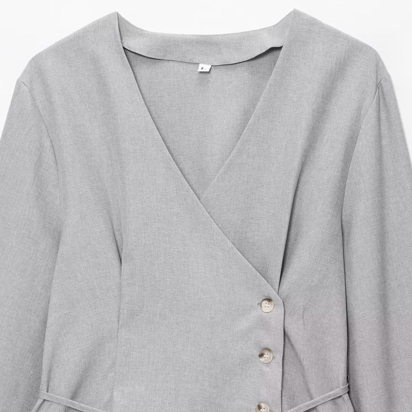 Solid Color, Pleats, V-neck, Irregular Design, Waist Tie
