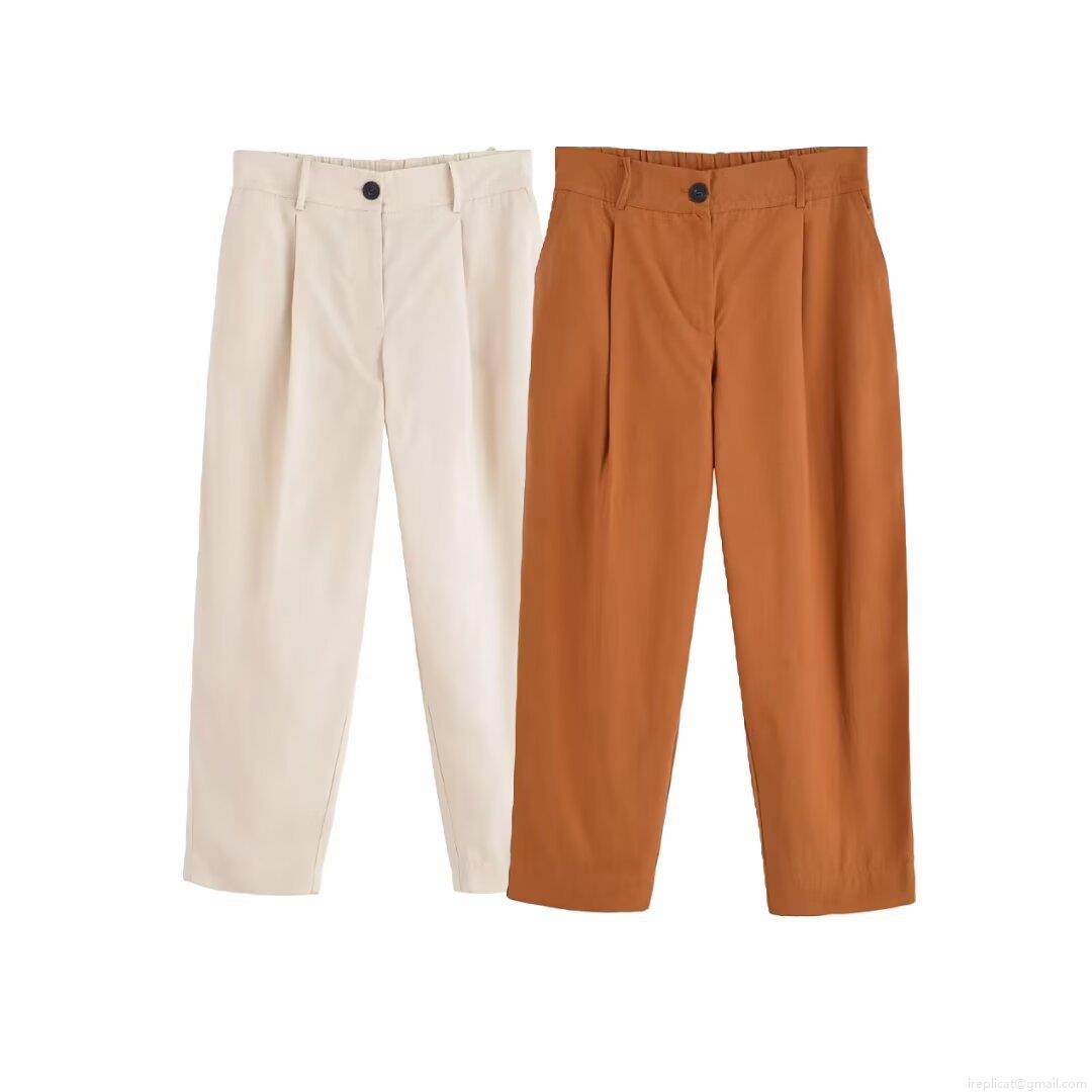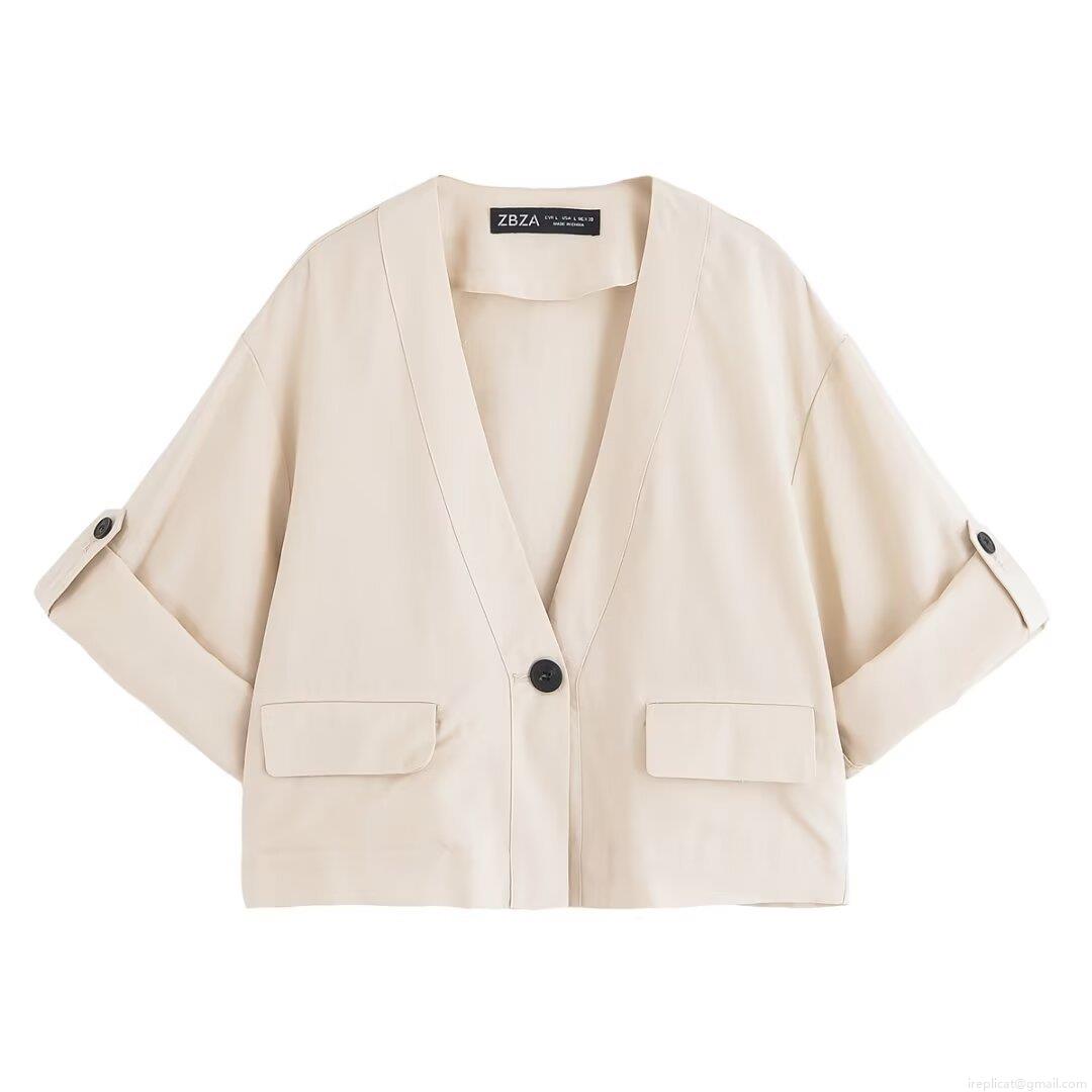 • Women's Casual Two-Piece Set European Style V-Neck Short Sleeve Jacket And High Waist Straight Leg Pants Solid Color Polyester Streetwear Autumn Outfits