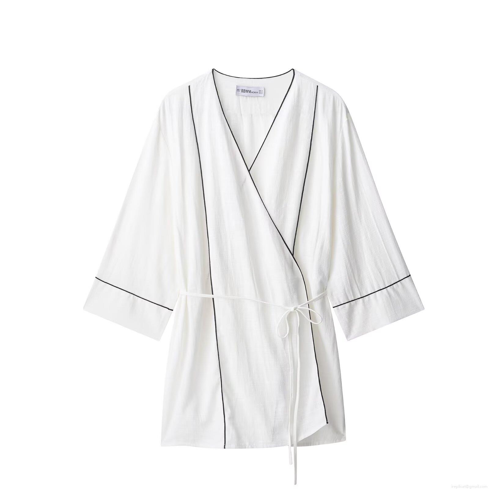 Women's Casual Two-Piece Set Polyester Contrast Piping Tie Wrap Top And Wide Leg Pants Streetwear Summer Lounge Outfit For Women