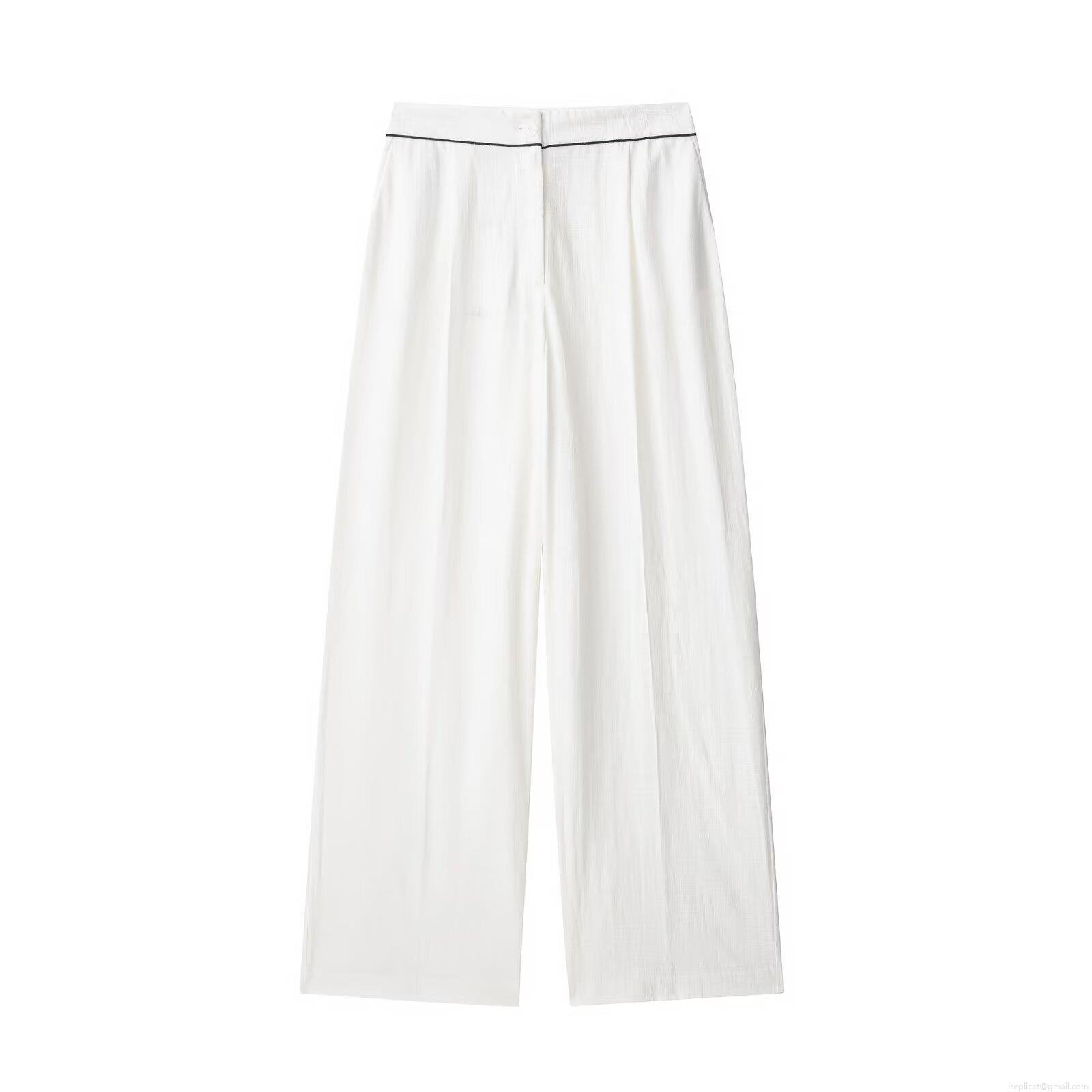 • Women's Casual Two-Piece Set Polyester Contrast Piping Tie Wrap Top And Wide Leg Pants Streetwear Summer Lounge Outfit For Women