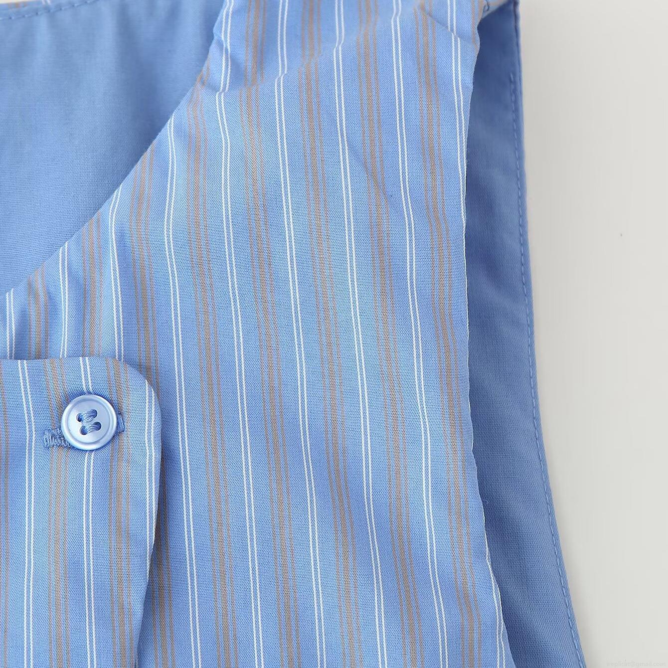 Jacquard, Vertical Stripes, Elastic Waistband, Asymmetrical Design, Button Decoration, Diagonal Placket