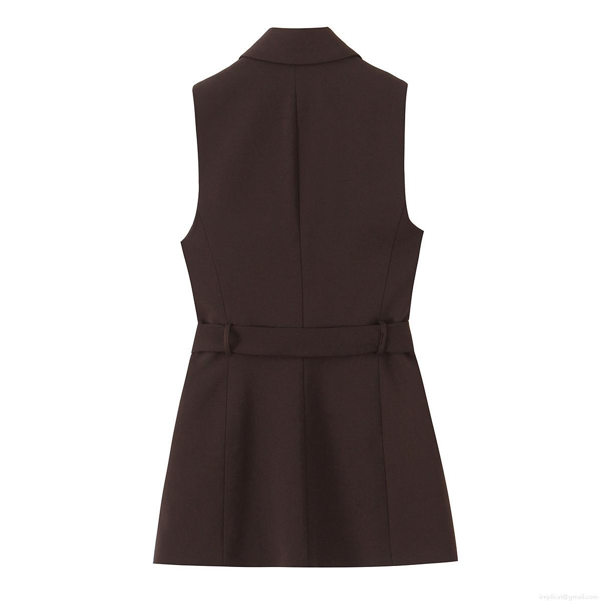 • Women's Casual Vest And Pants Set Side Stripe Sleeveless Blazer Vest With Belt High Waist Straight Leg Trousers For Office Commute 2 Piece Outfit