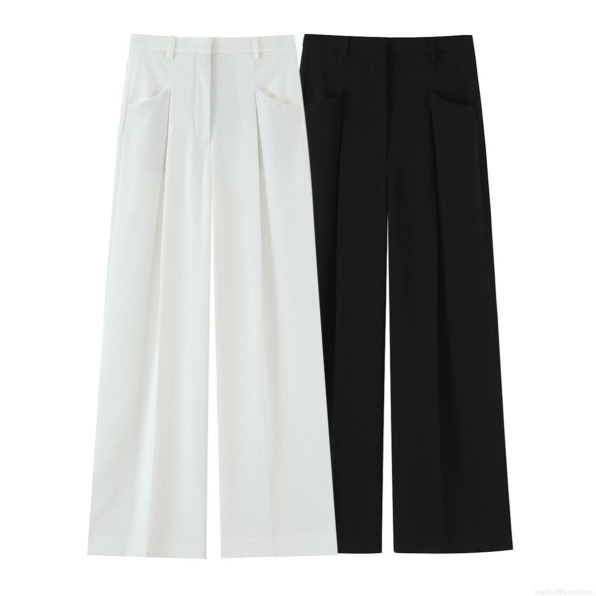 Solid Color, V-neck, Wide-leg Pants, Single-breasted, High-waisted, Pleated Design