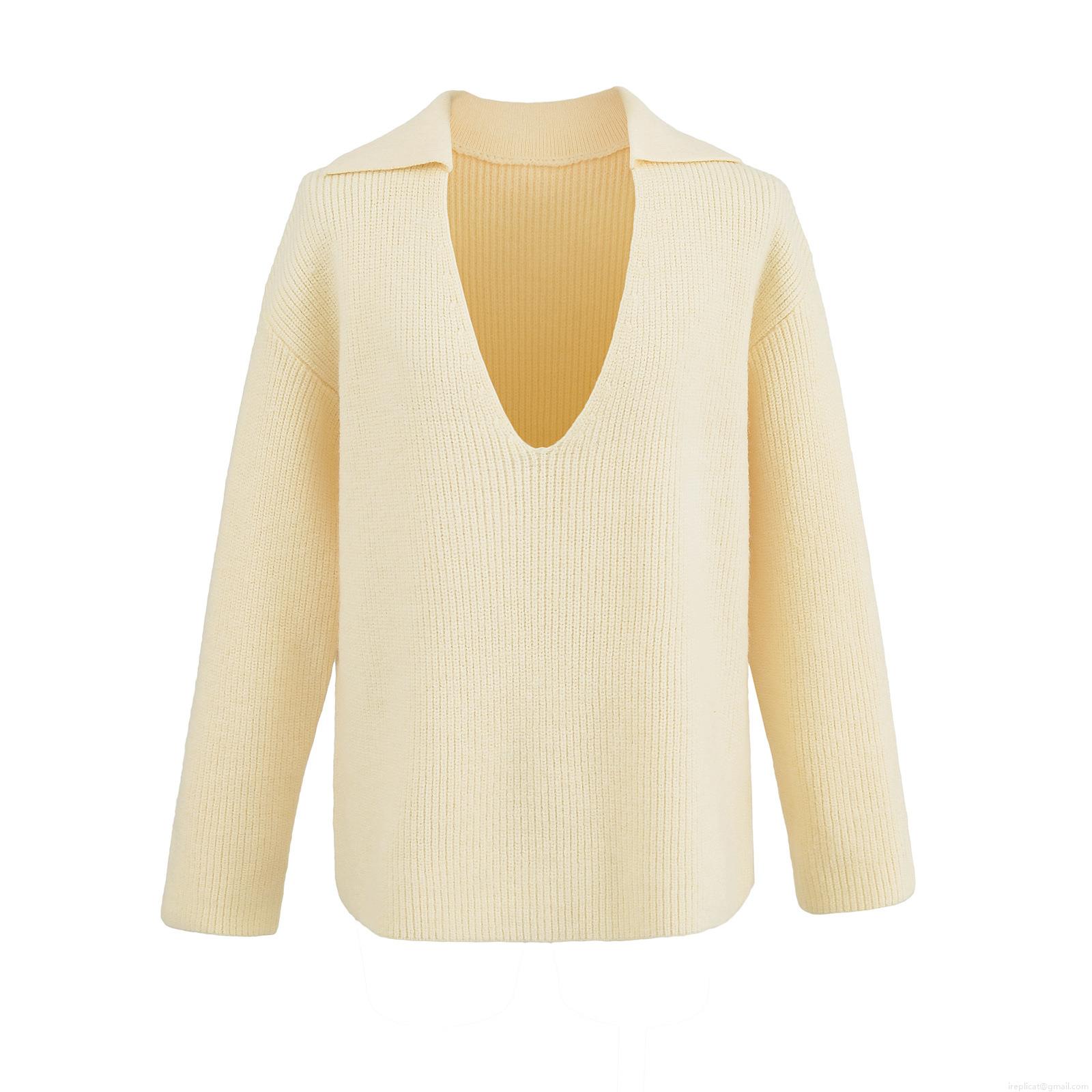 Solid Color, Lapel, Ribbed Texture, Knit Rib, Deep V-neck, Dropped Shoulder Sleeves