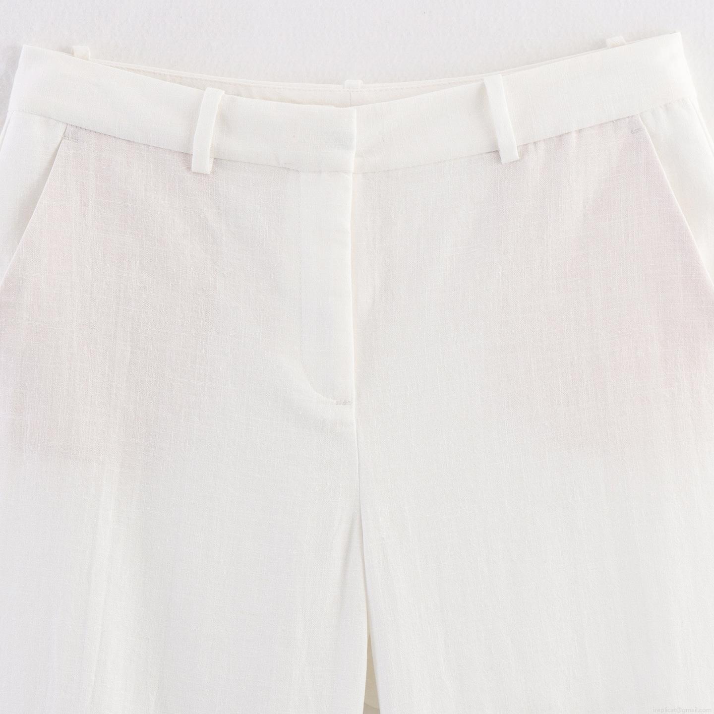 • Women's Casual White Cotton Polyester Blend Set Short Sleeve Lace Trim Shirt and Straight Leg Pants Two Piece Outfit Summer Comfort Loungewear