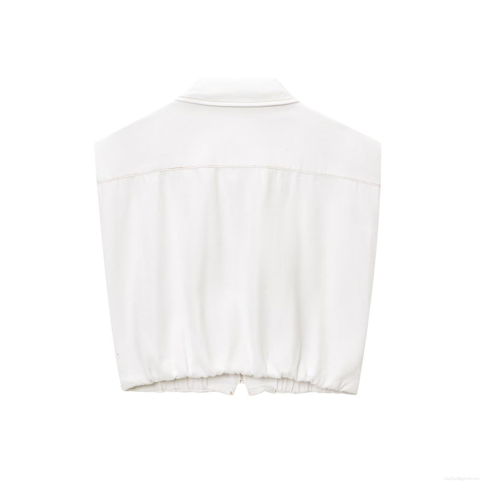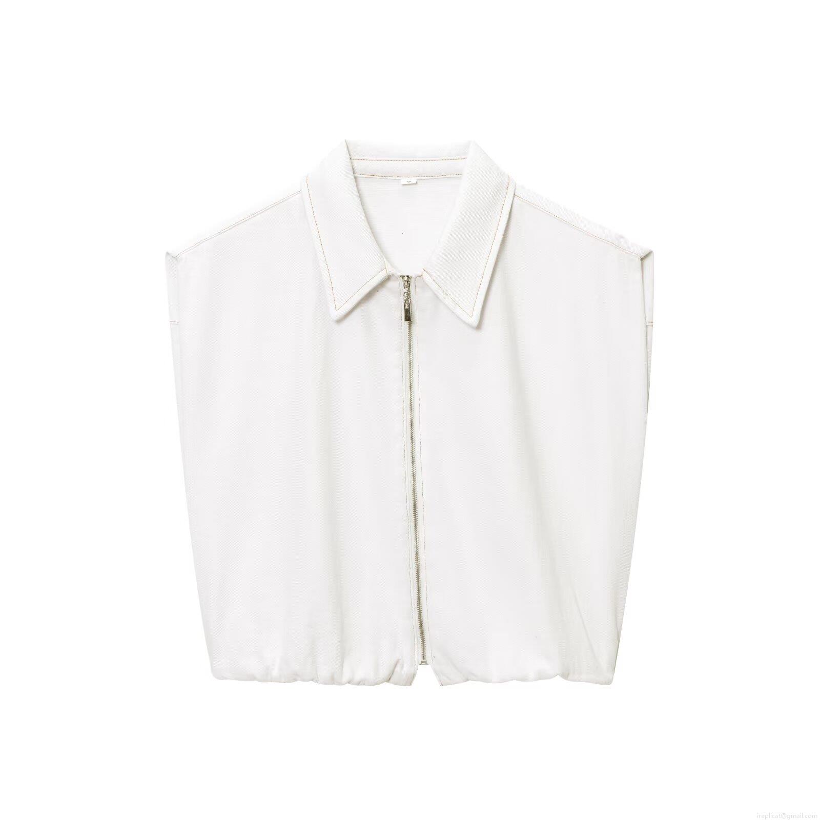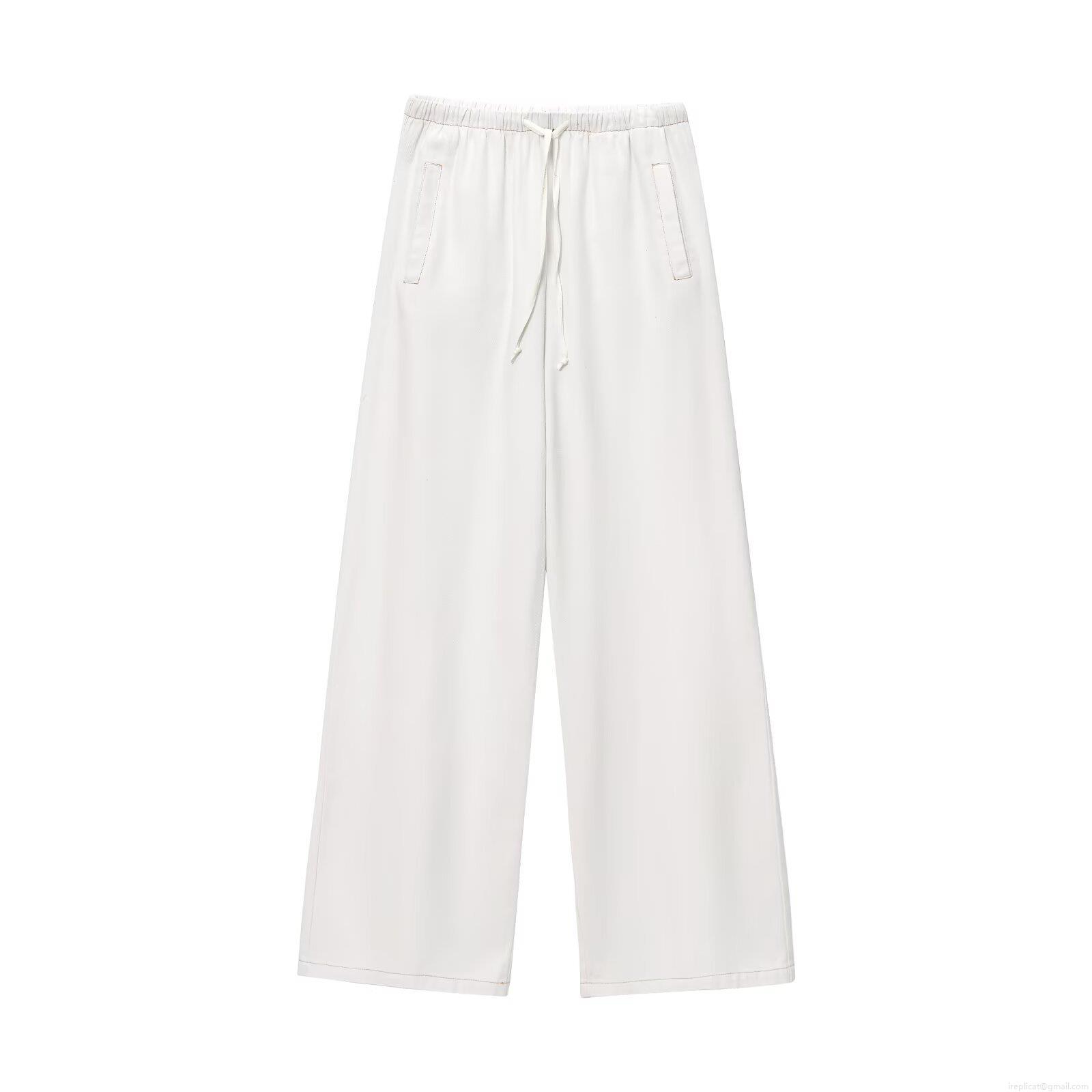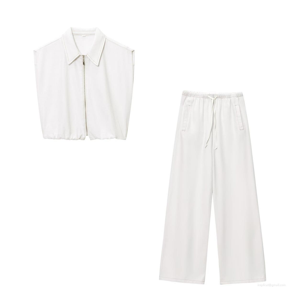 • Women's Casual White Two-Piece Outfits Set Sleeveless Zipper Lapel Vest And Wide Leg Drawstring Pants High Street Streetwear Outfits For Summer