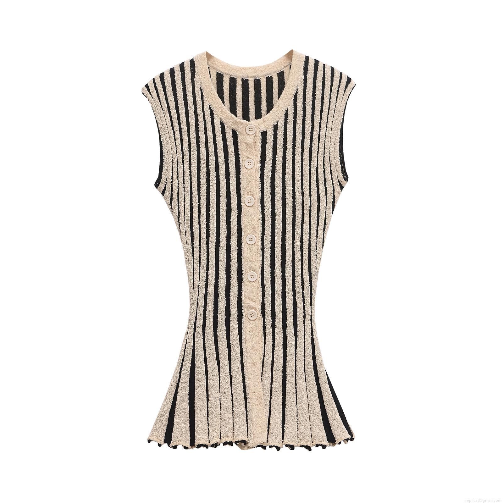 • Women's Chic Knitted Striped Two Piece Set Sleeveless Button Down Vest And High Waist Flare Pants Casual Western Streetwear Fall Fashion Co-ords