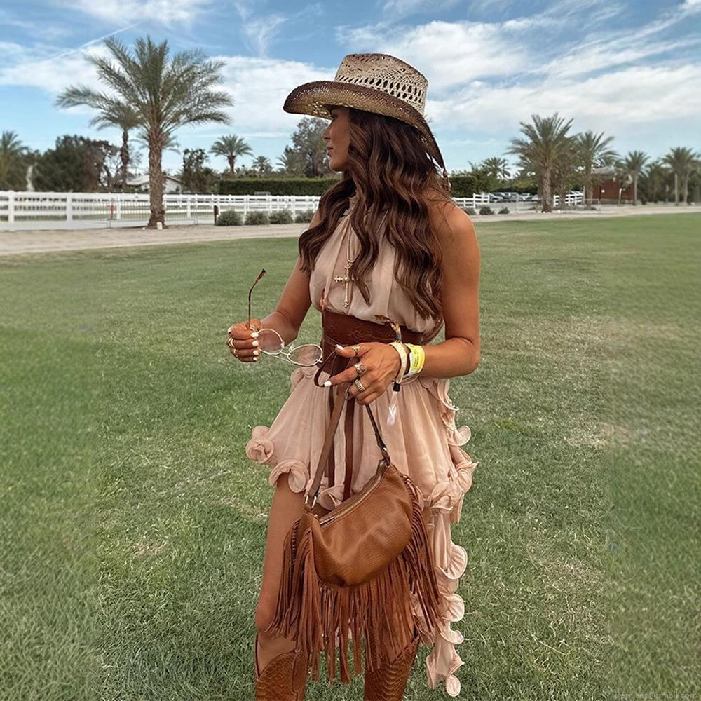 • Women's Chiffon Ruffle Two Piece Set Halter Sleeveless Top And Shorts Sweet Vacation Bohemian Summer Beach Party Wear