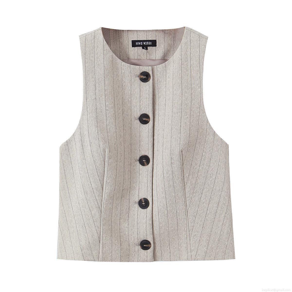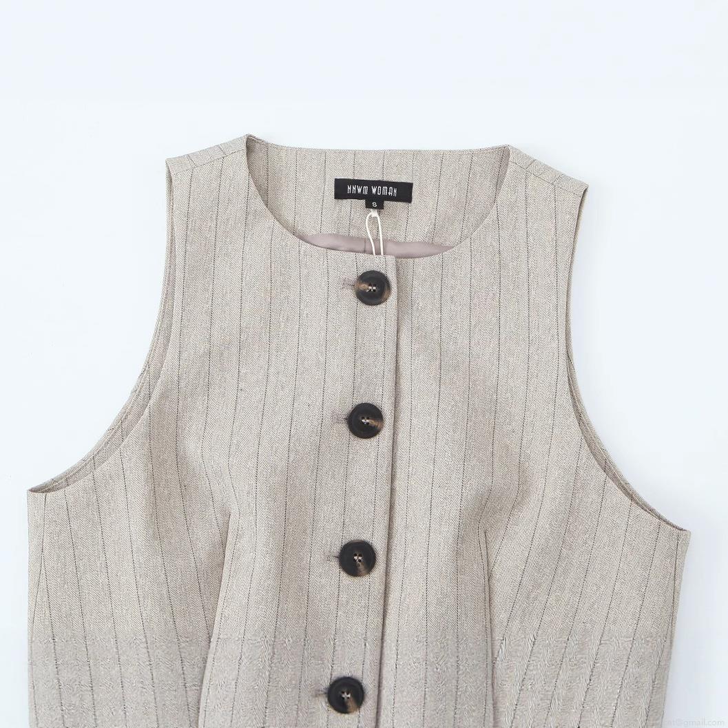 • Women's Commuter Two Piece Set Striped Herringbone Sleeveless Vest Top And High Waist Wide Leg Pants Polyester Casual Office Suit