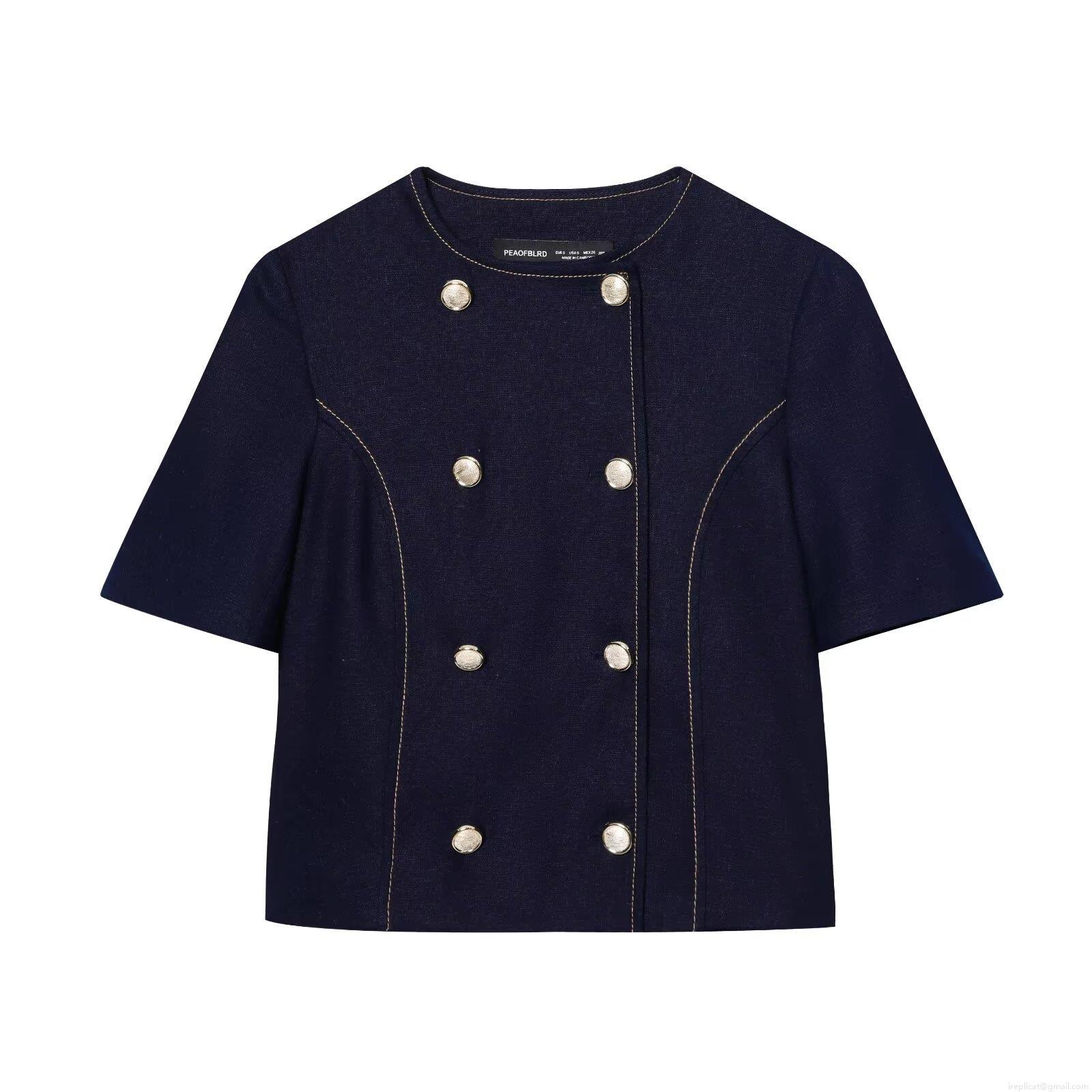 Solid Color, Crew Neck, Double-breasted, Contrasting Color Bright Lines, Metal Buttons