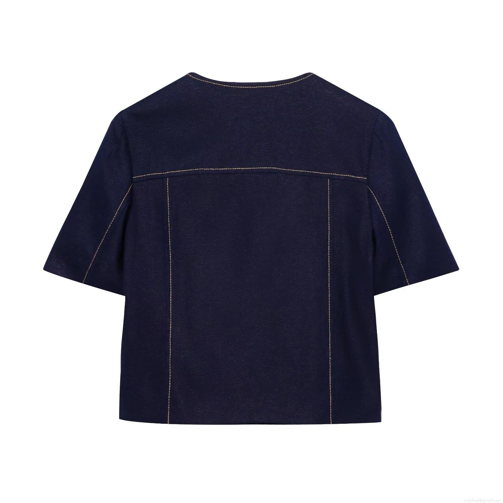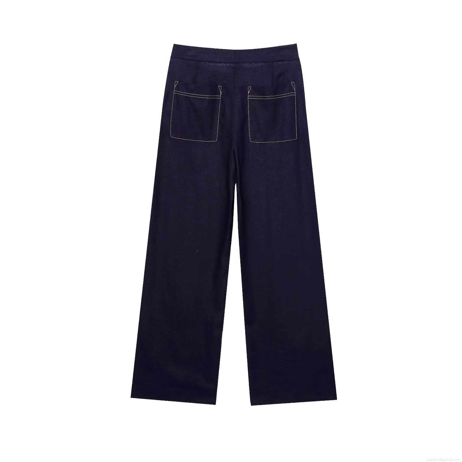 • Women's Cotton Linen Short Sleeve Double Breasted Blazer or Straight Leg Pants Two Piece Set Fashion Contrast Stitching Casual Suit for Commute Office