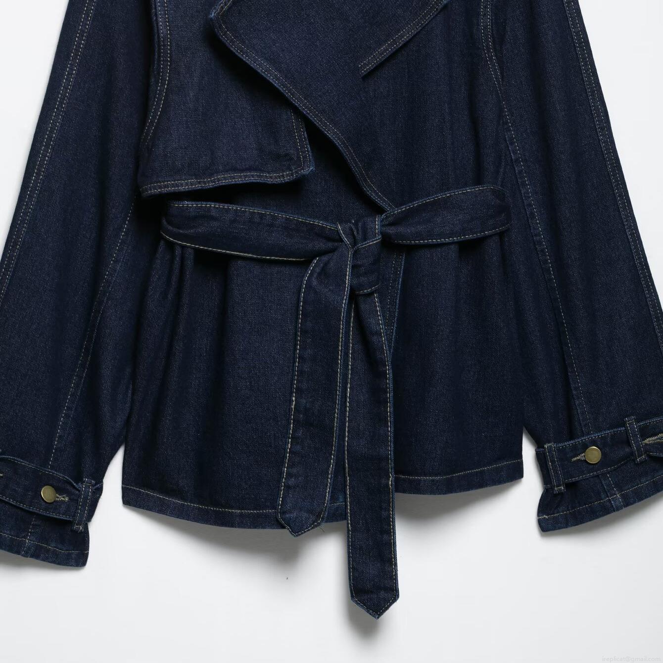 • Women's Dark Blue Denim Style Two-Piece Set Belted Trench Coat And Wide Leg Pants Casual Fashion Summer Outfit For Women