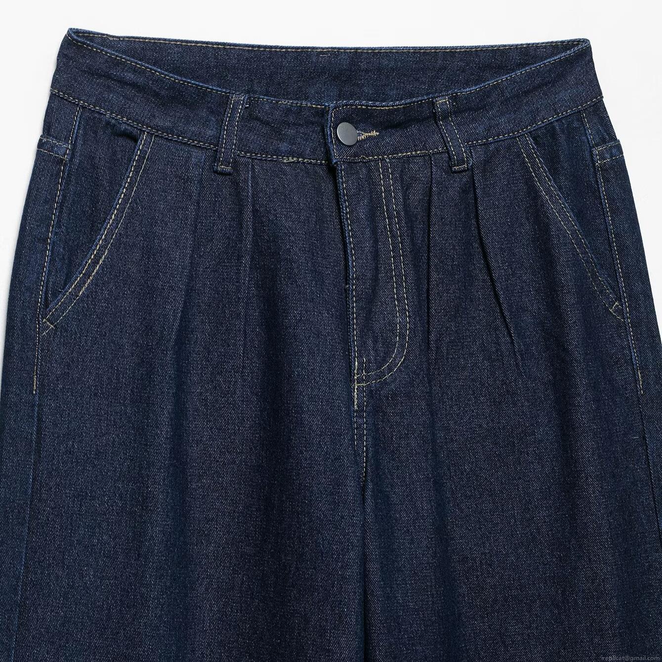 Solid Color, Belt, High-waisted, Denim Texture