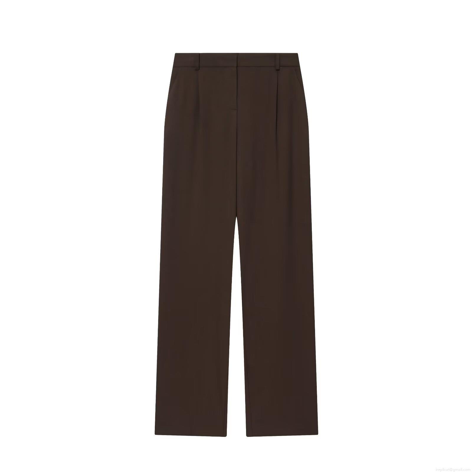 Solid Color, Shoulder Pads, Double-breasted, High-waisted, Straight-leg Wide-leg, Pleated Design