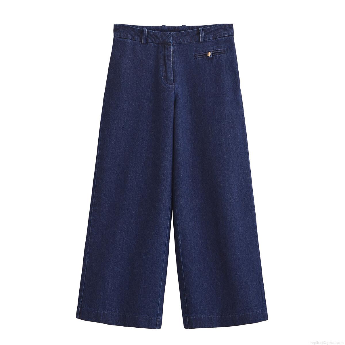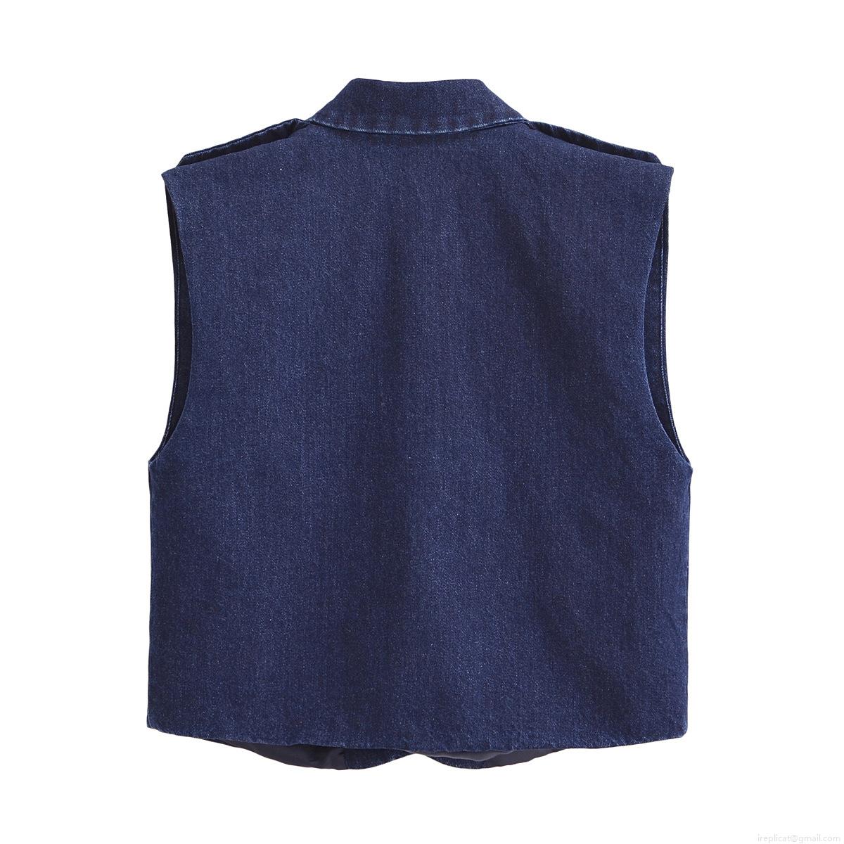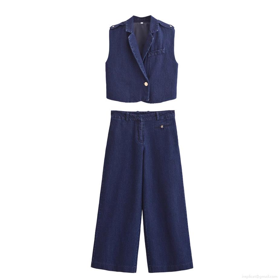 • Women's Denim 2 Piece Set Dark Blue Lapel Short Vest And High Waist Wide Leg Pants Casual Outfits For Women Fashion Streetwear Suit