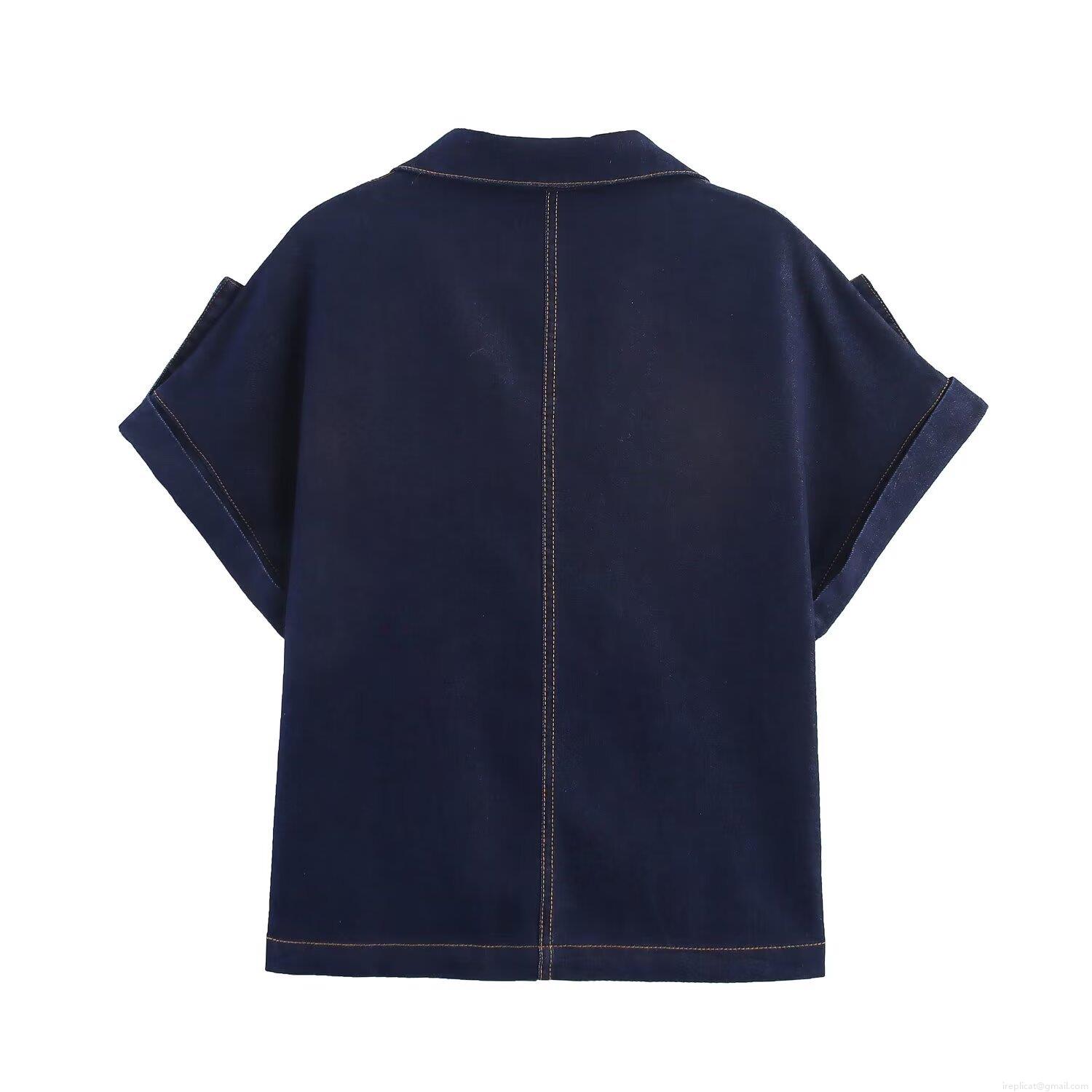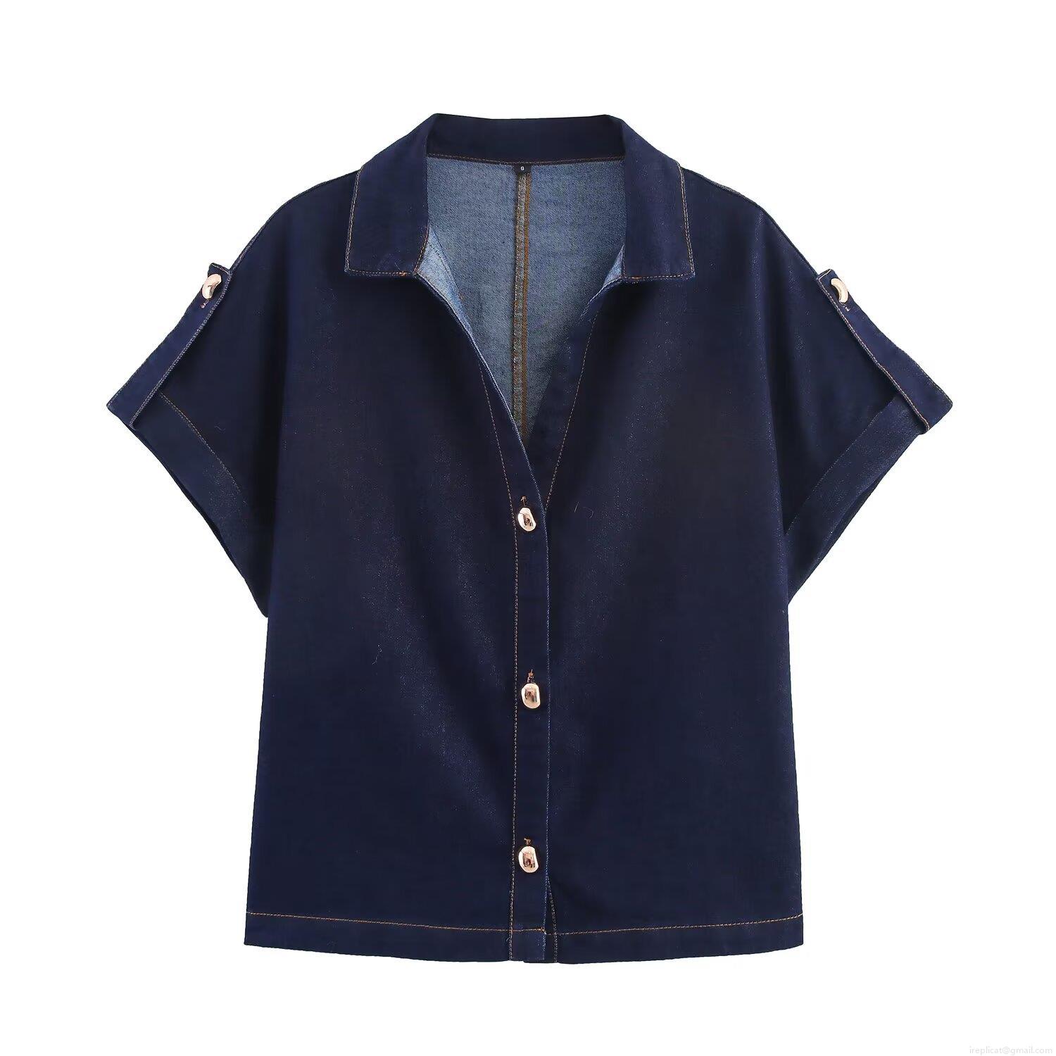 • Women's Denim Two Piece Set 85% Cotton Short Sleeve Button Down Shirt And High Waist Wide Leg Pants Casual Streetwear Outfit