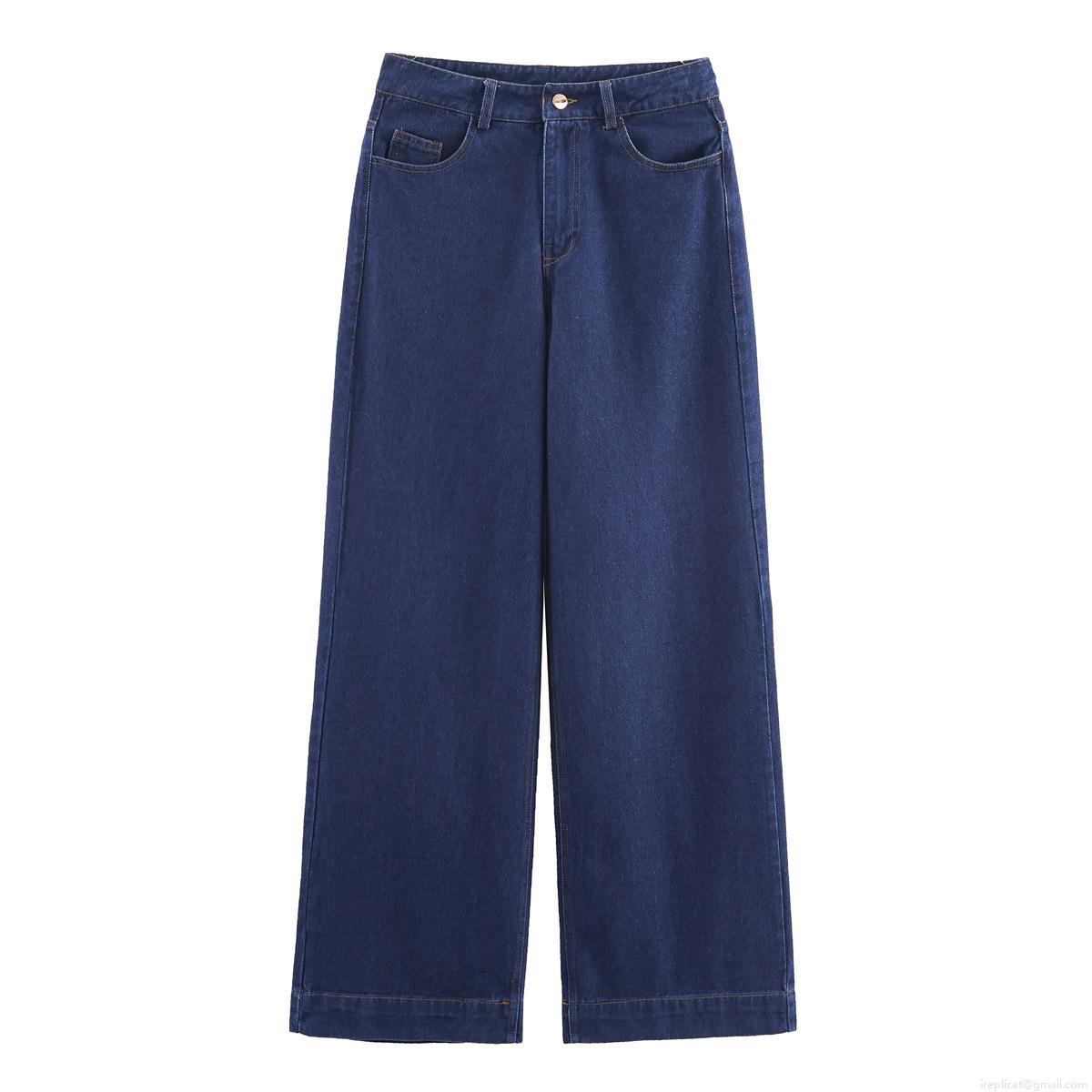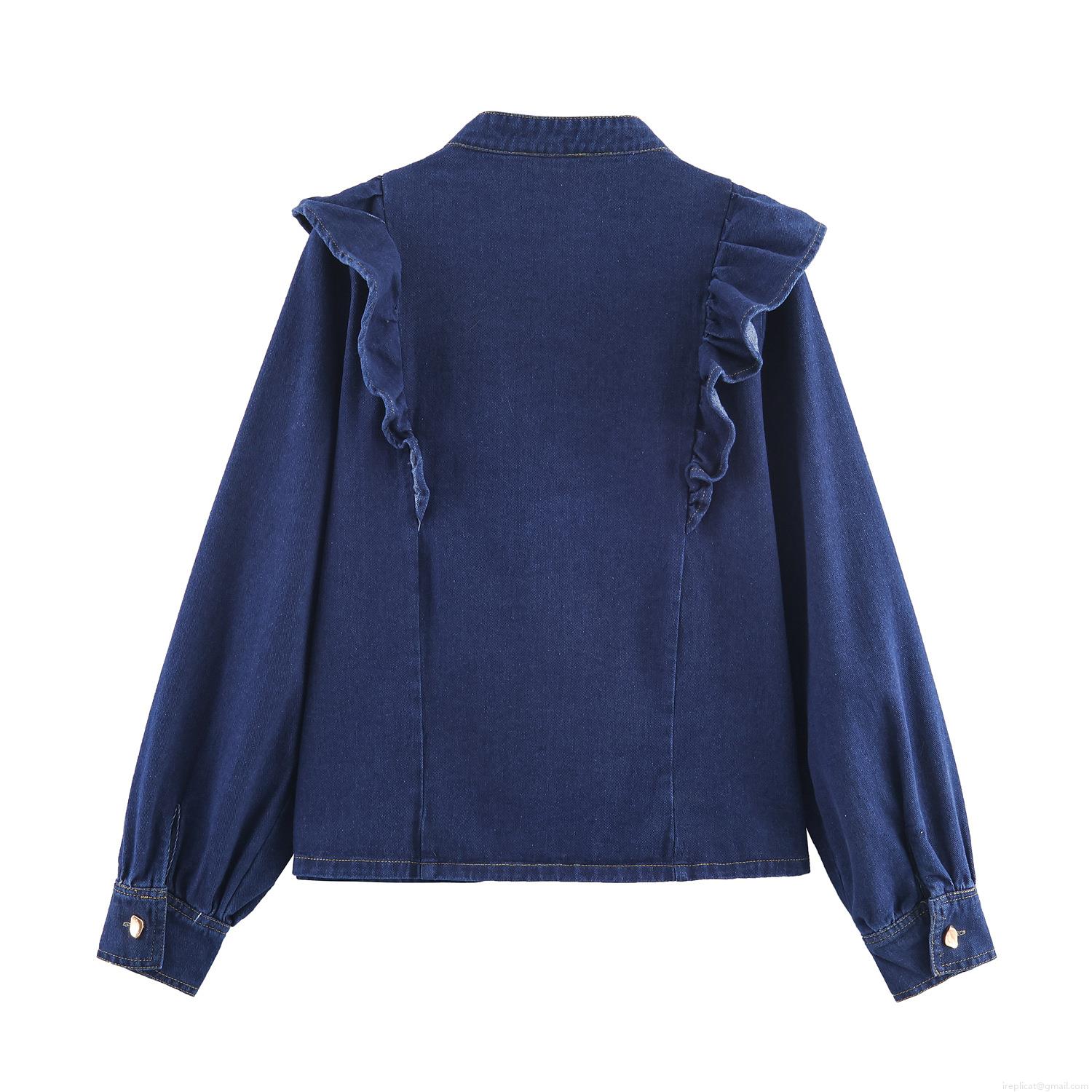 • Women's Denim Two Piece Set Ruffle Long Sleeve Shirt and High Waist Wide Leg Pants Streetwear Casual Solid Color Cotton Blend Autumn Outfits
