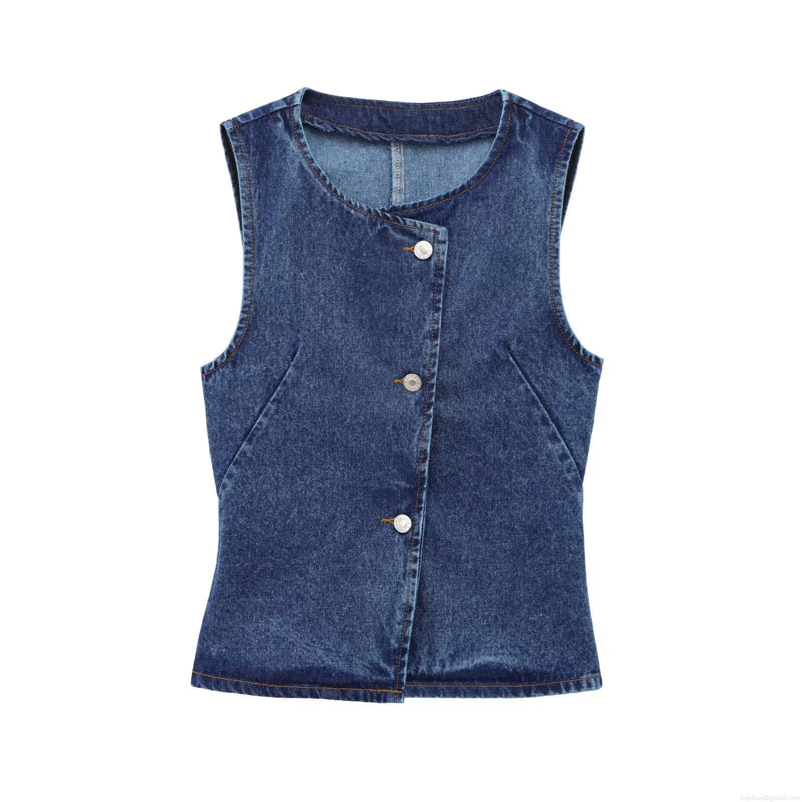 • Women's Denim Two-Piece Set Washed Cotton Sleeveless Vest Waistcoat And Wide Leg Jeans With Metal Chain Belt Streetwear Casual Pants Outfit For Women