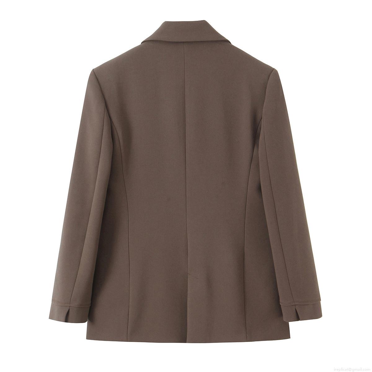 • Women's Double Breasted Blazer and Tapered Pants Set Polyester Padded Shoulder Business Casual Suit Two Piece Set for Office Streetwear Coffee Brown