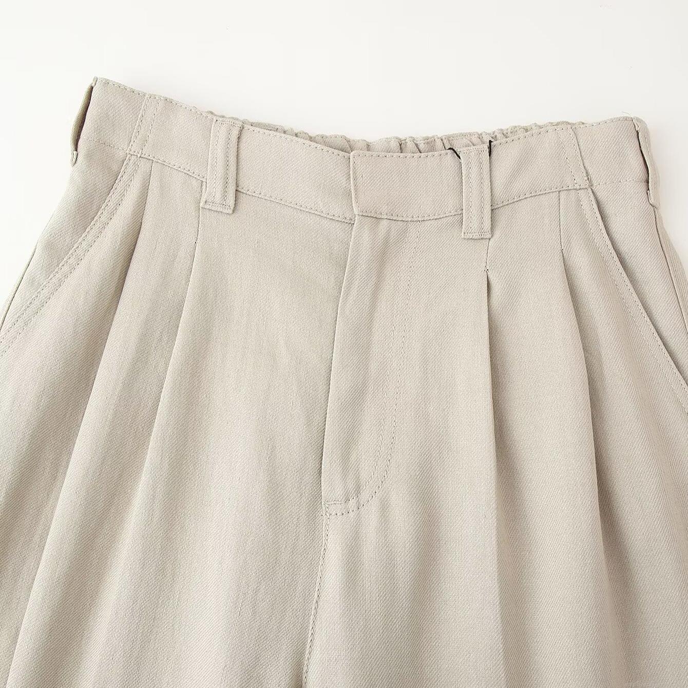 Solid Color, Pocket, Pleats, Wide-leg Pants, Suit Collar, Single Buckle