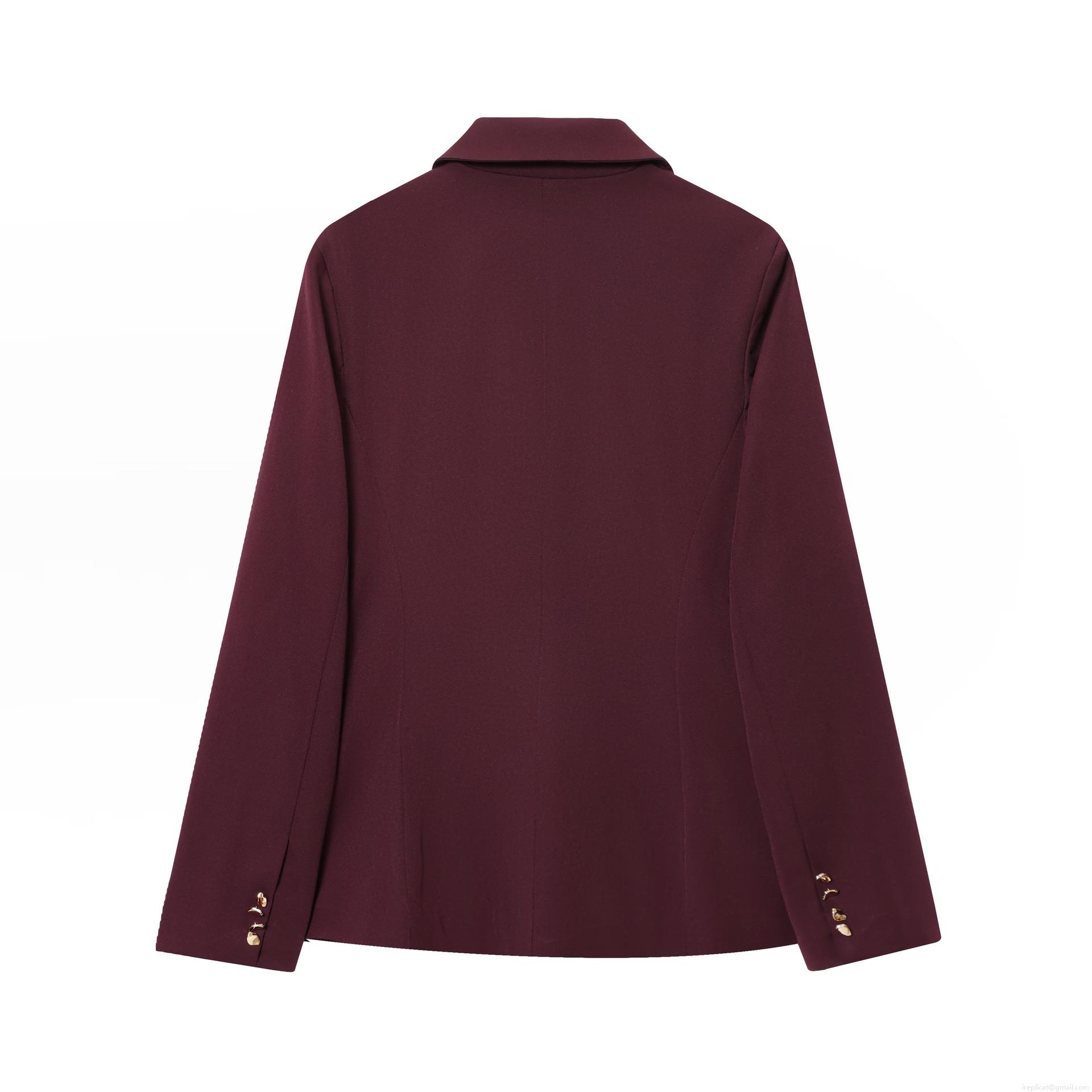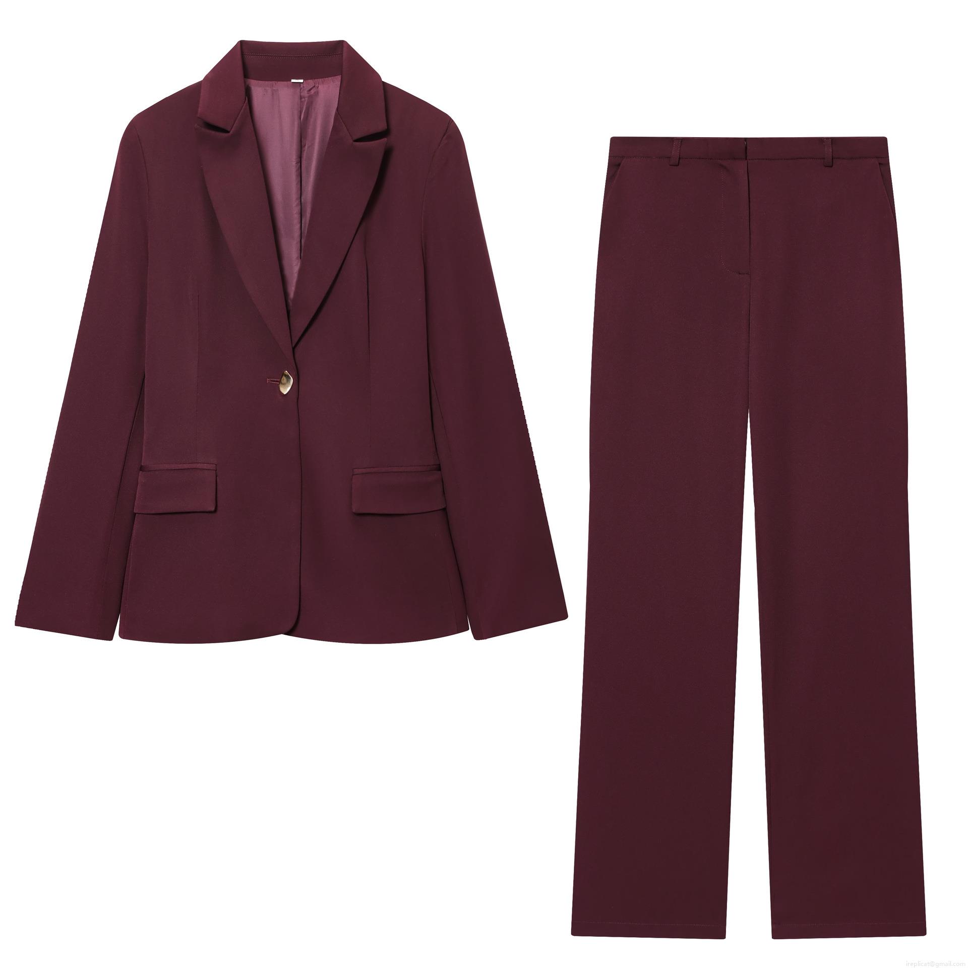 • Women's Elegant 2 Piece Blazer Suit Set Slim Fit Single Breasted Jacket and Straight Leg Pants Polyester Solid Color Office Business Casual Outfits Burgundy