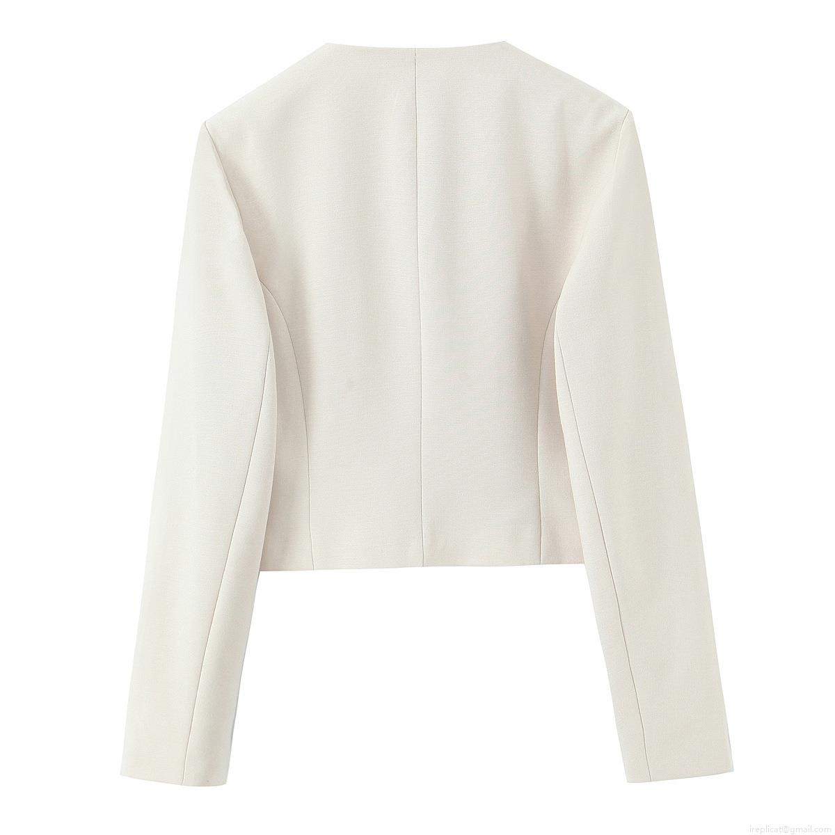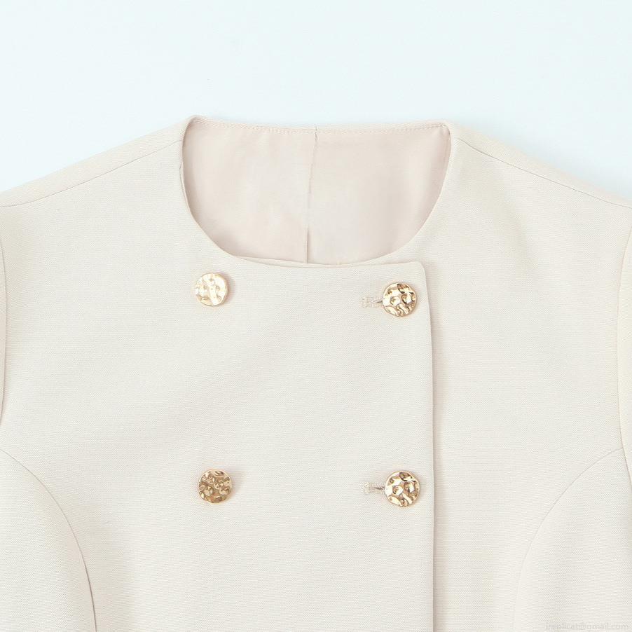 Solid Color, Metal Chain Decoration, Crew Neck Design, Gold Double-breasted Buttons